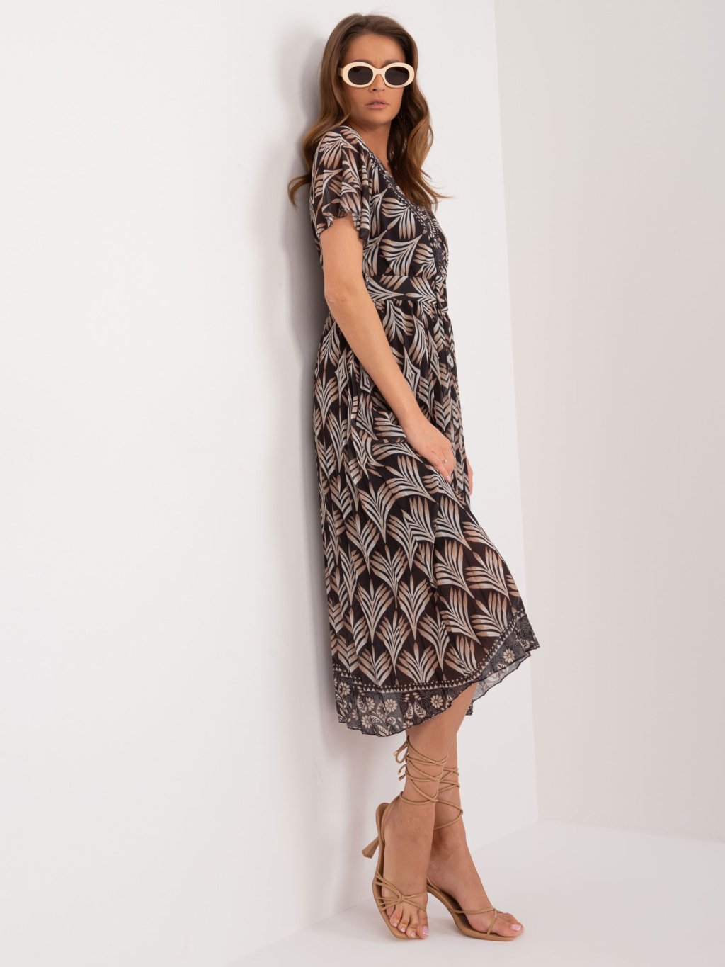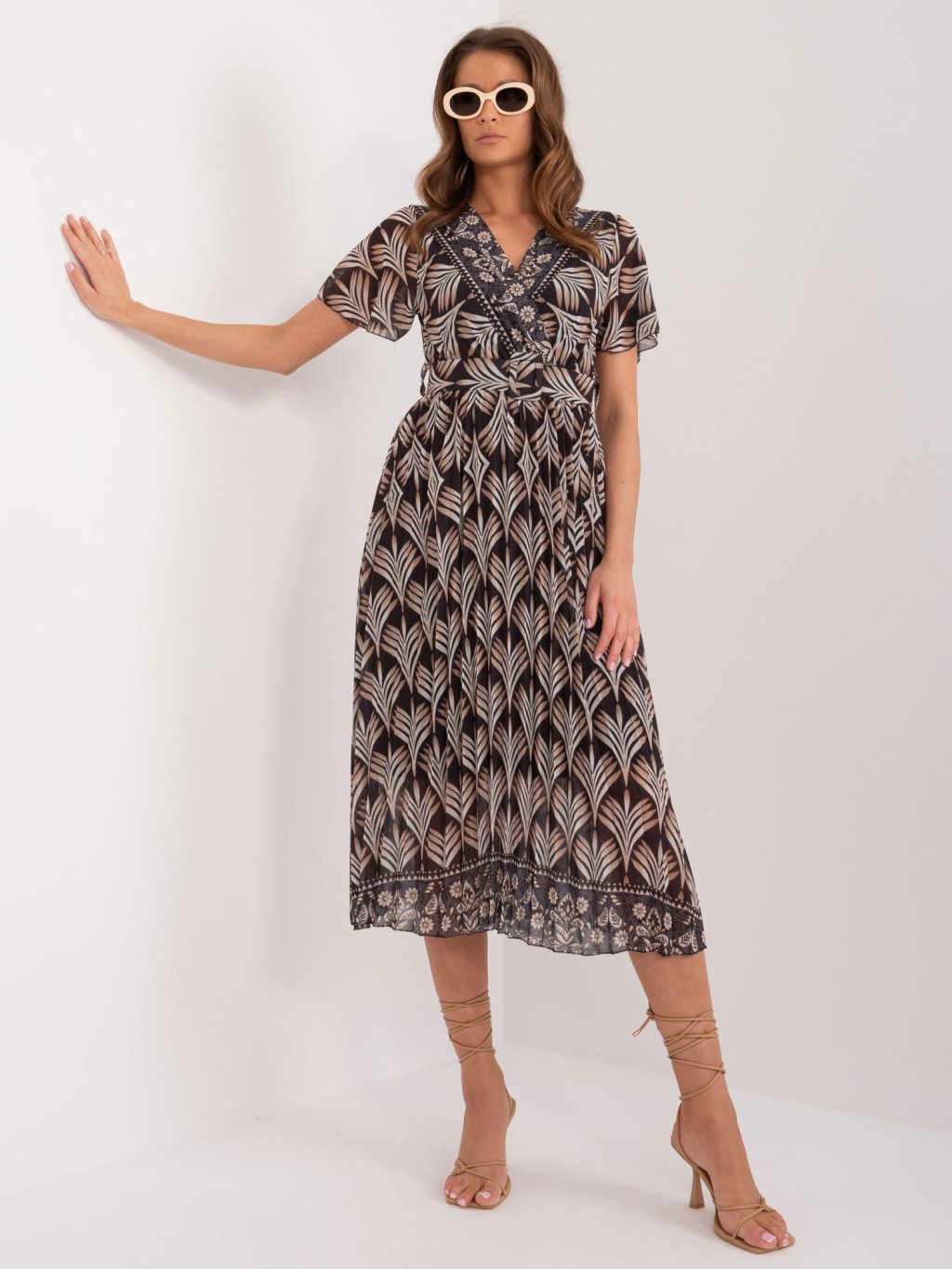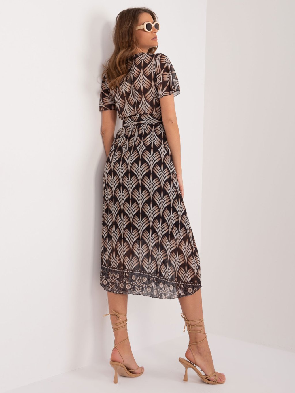 ČERNO-BÉŽOVÉ VZOROVANÉ MIDI ŠATY S PÁSKEM