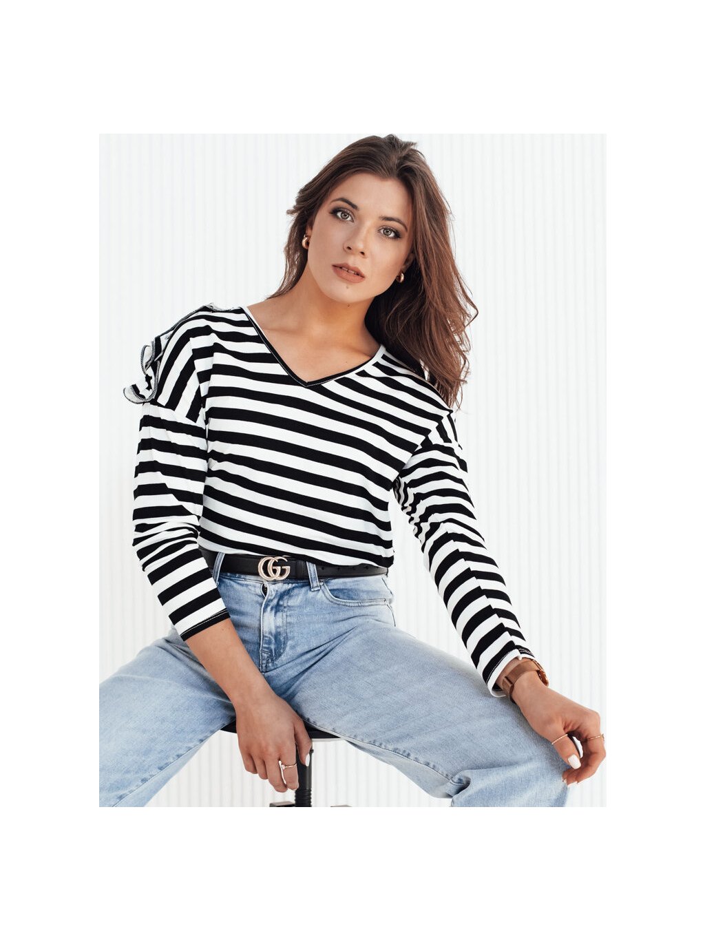 ČERNO-BÍLÉ PRUHOVANÉ TRIČKO S VOLÁNKY NA RAMENOU HILAN