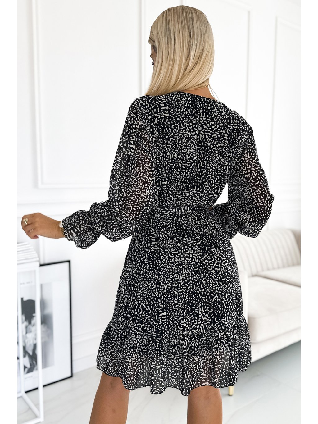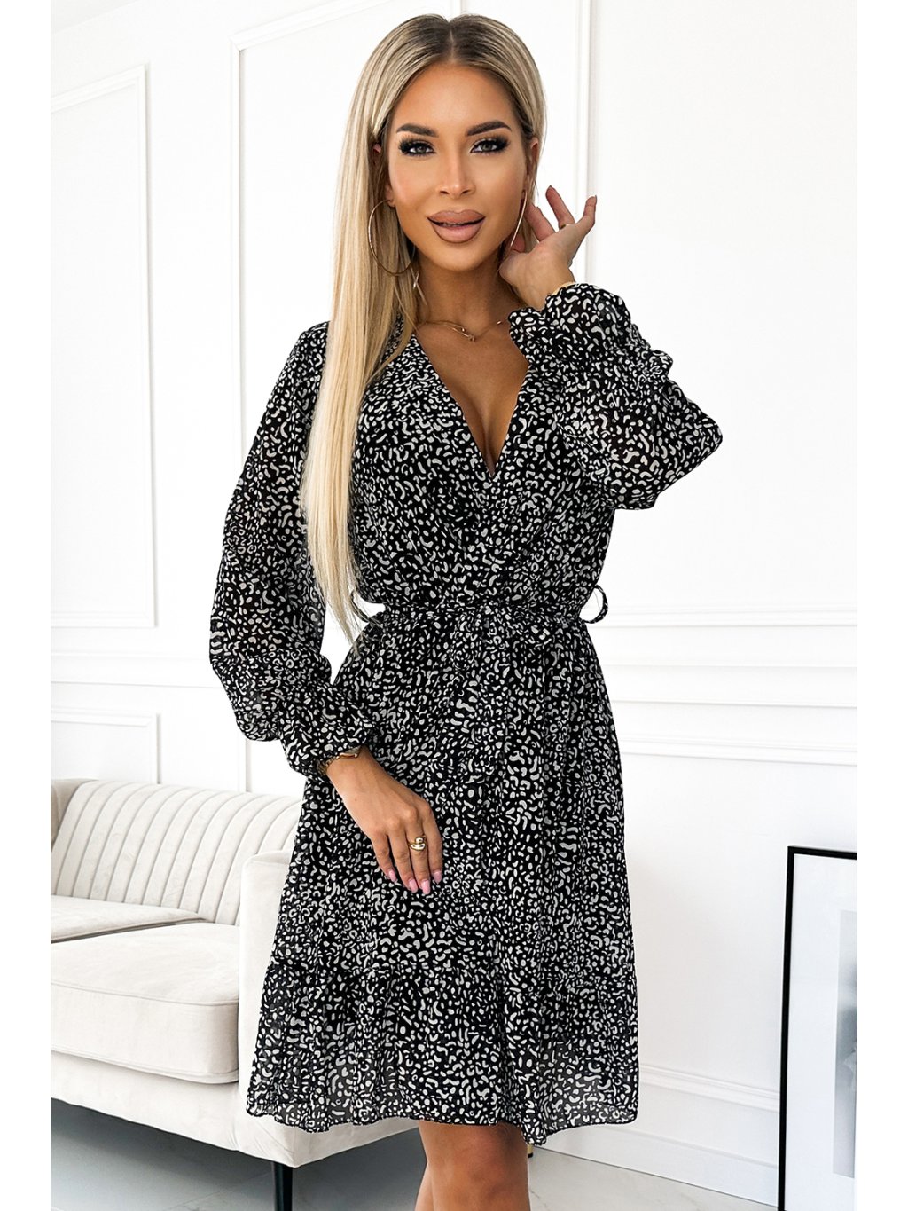 ČERNO-BÍLÉ ŠIFONOVÉ VZOROVANÉ ŠATY S HLUBOKÝM VÝSTŘIHEM
