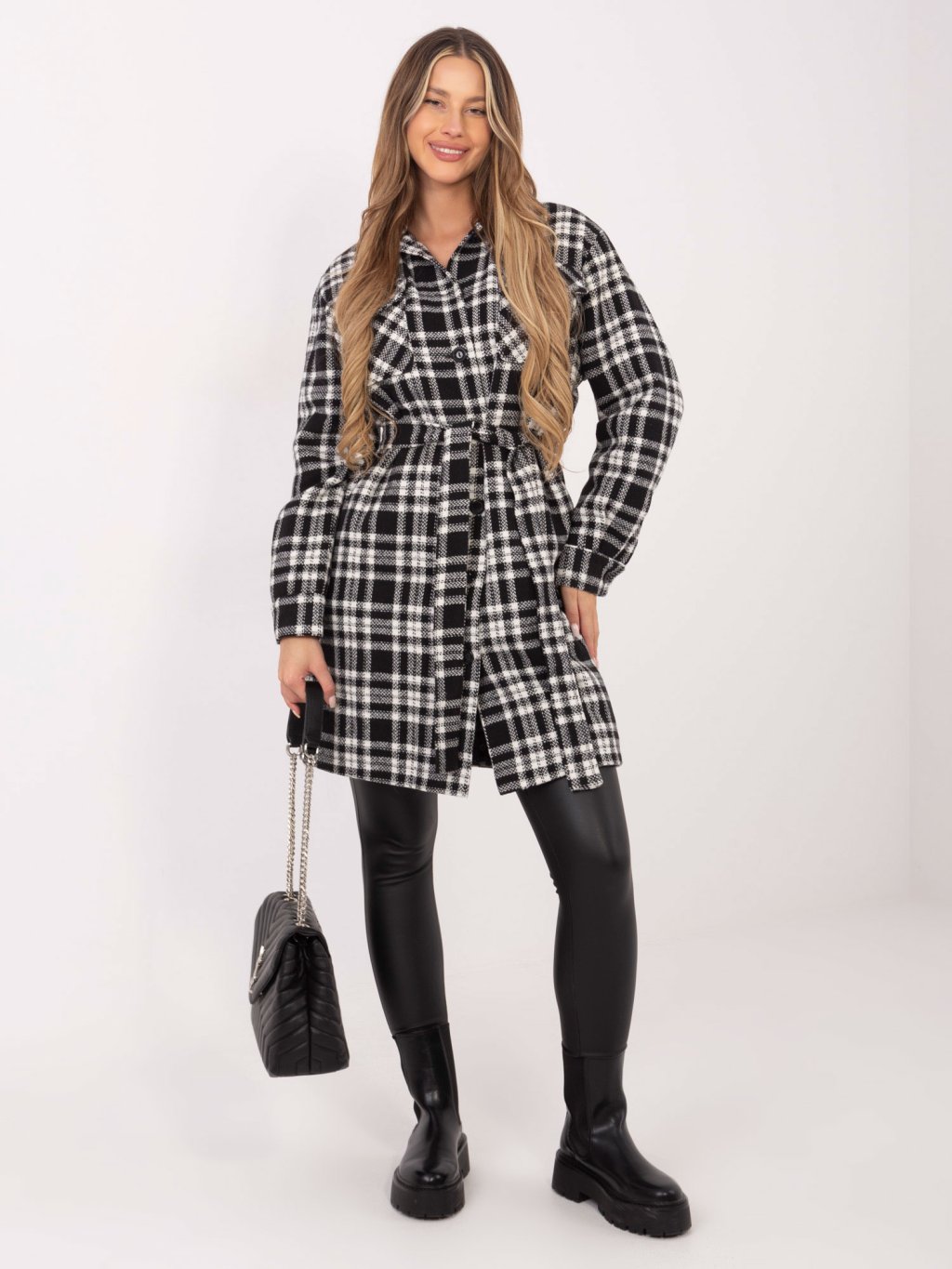 ČERNO-BÍLÝ DÁMSKÝ KÁROVANÝ KABÁT