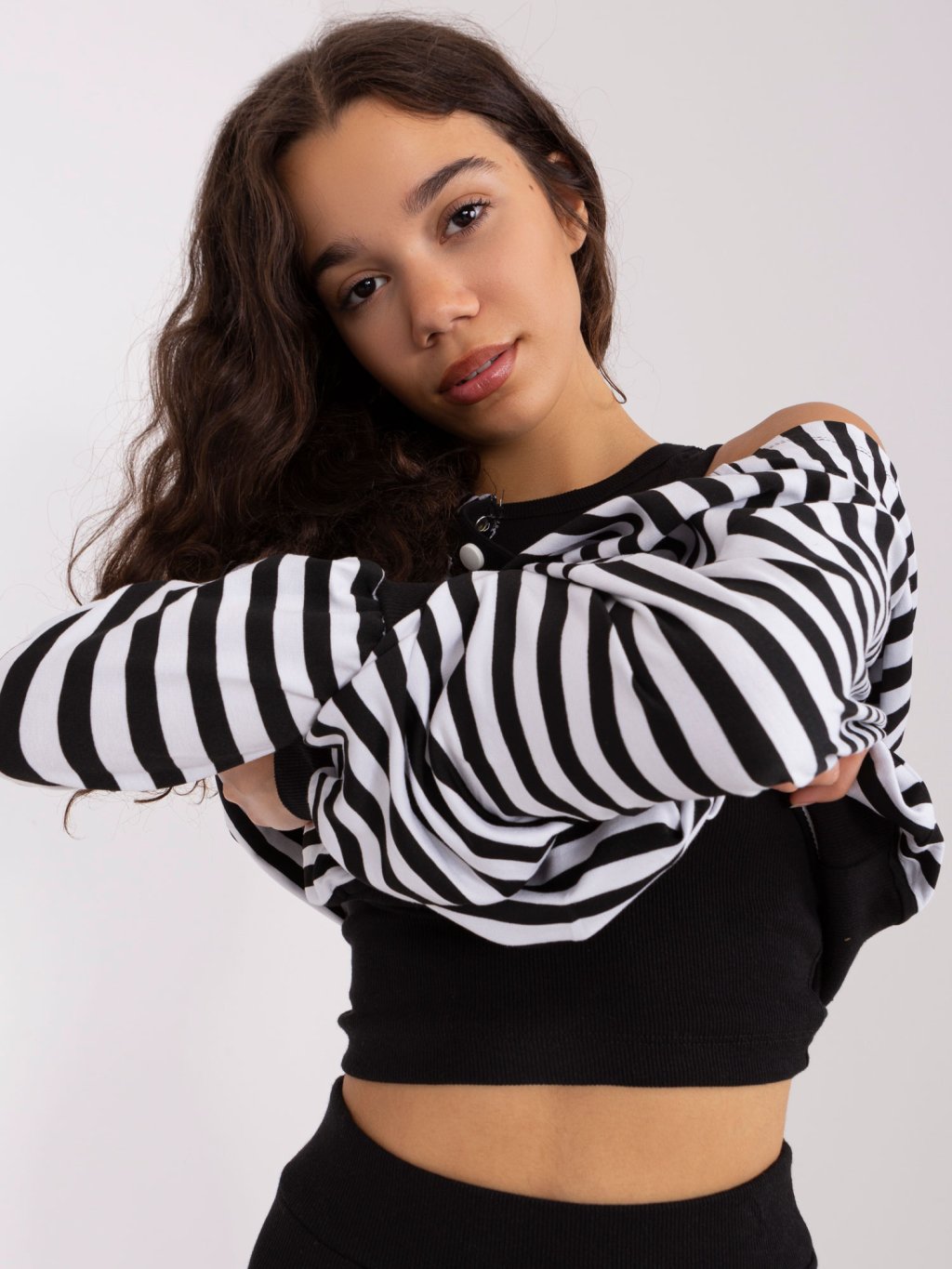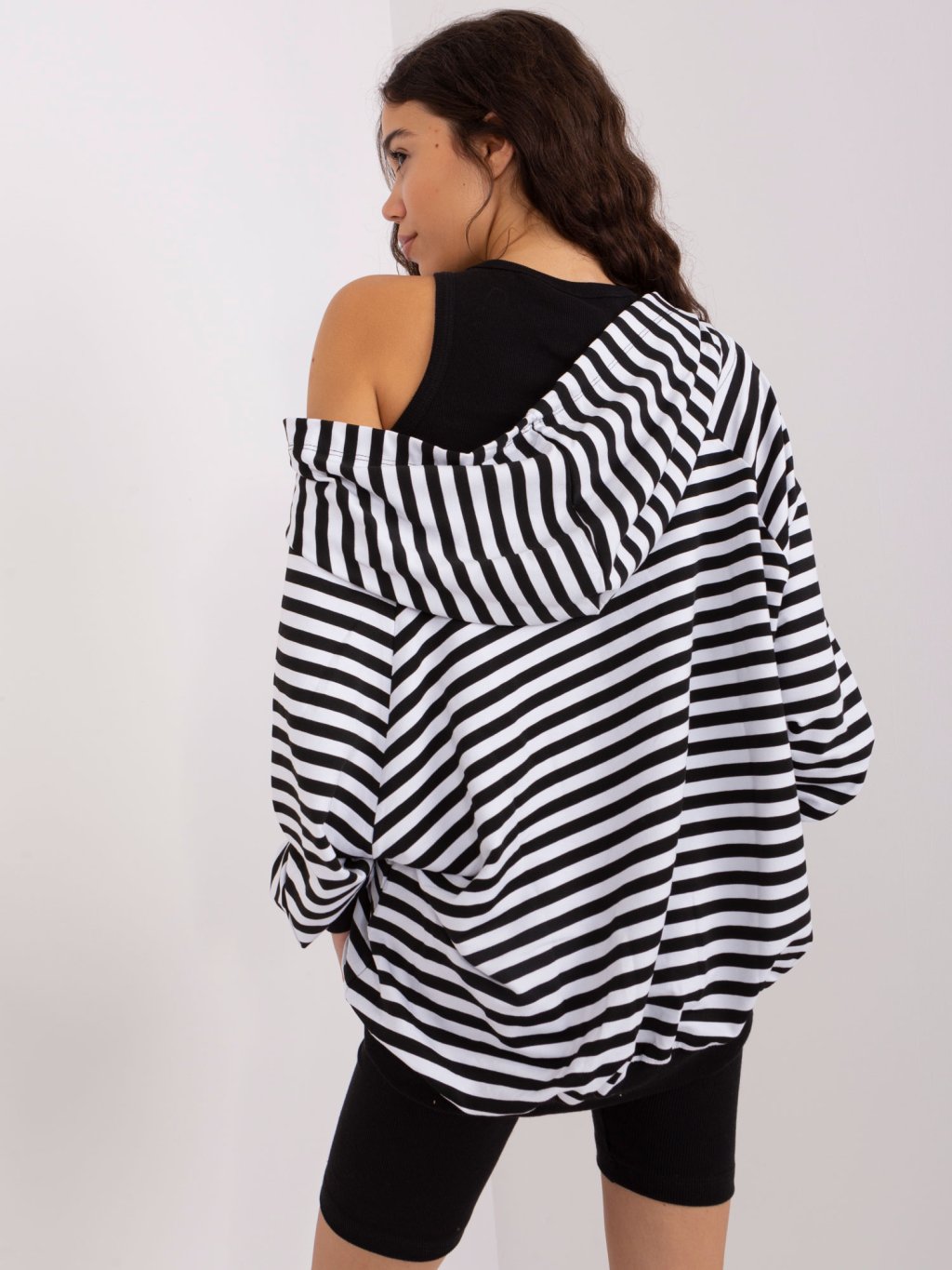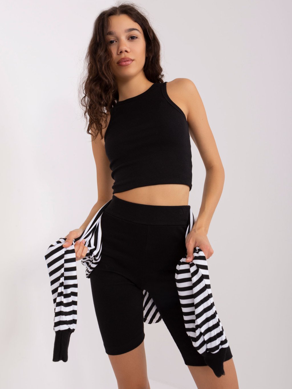 ČERNO-BÍLÝ KOMPLET TOPU, KRAŤASŮ A MIKINY