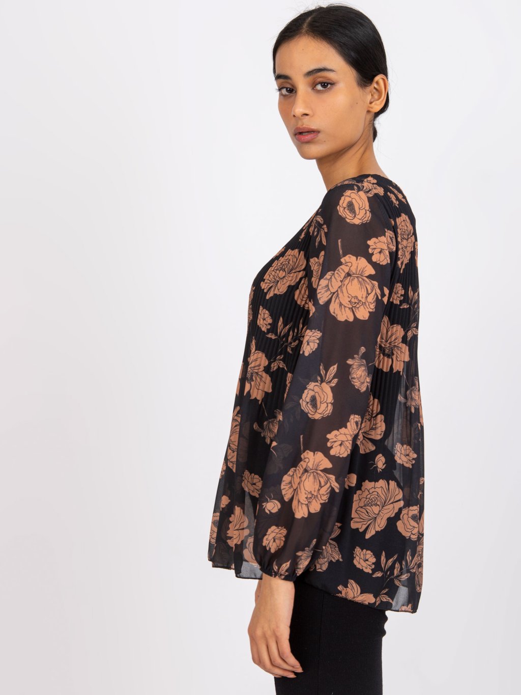 ČERNO-HNĚDÁ KVĚTINOVÁ PLISOVANÁ HALENKA LIANA