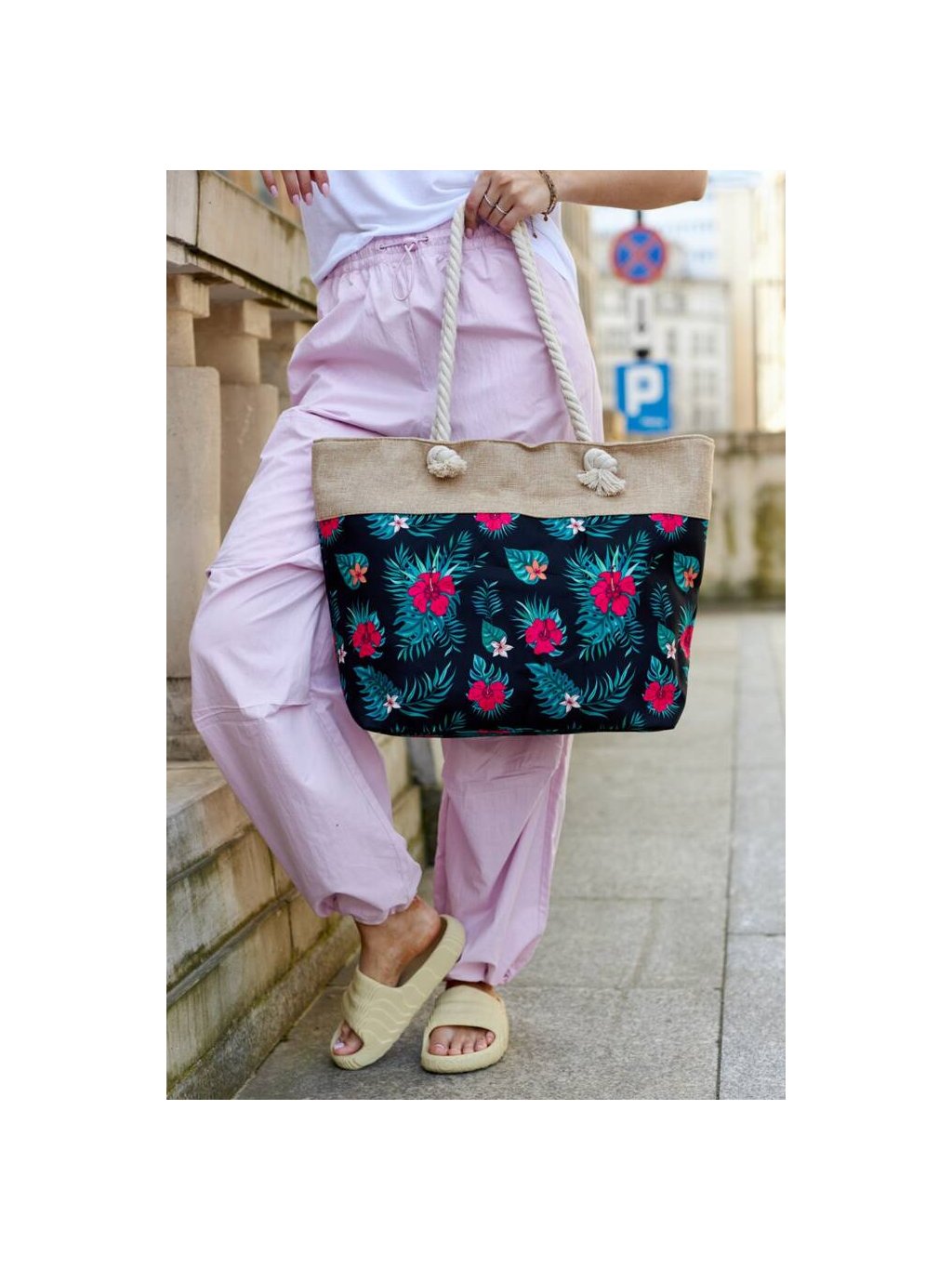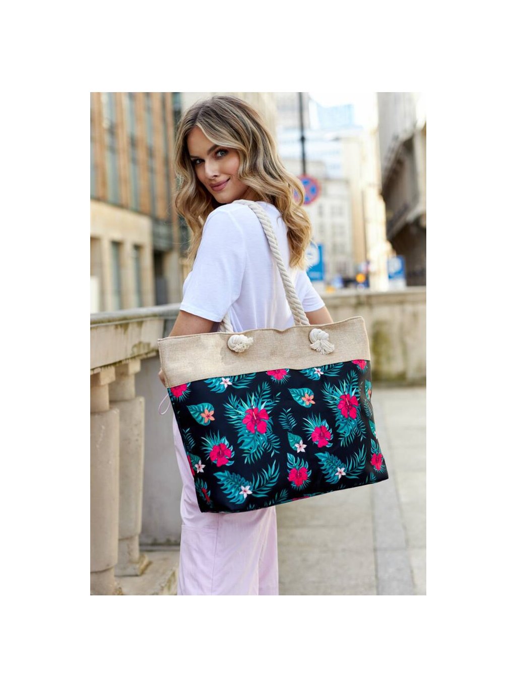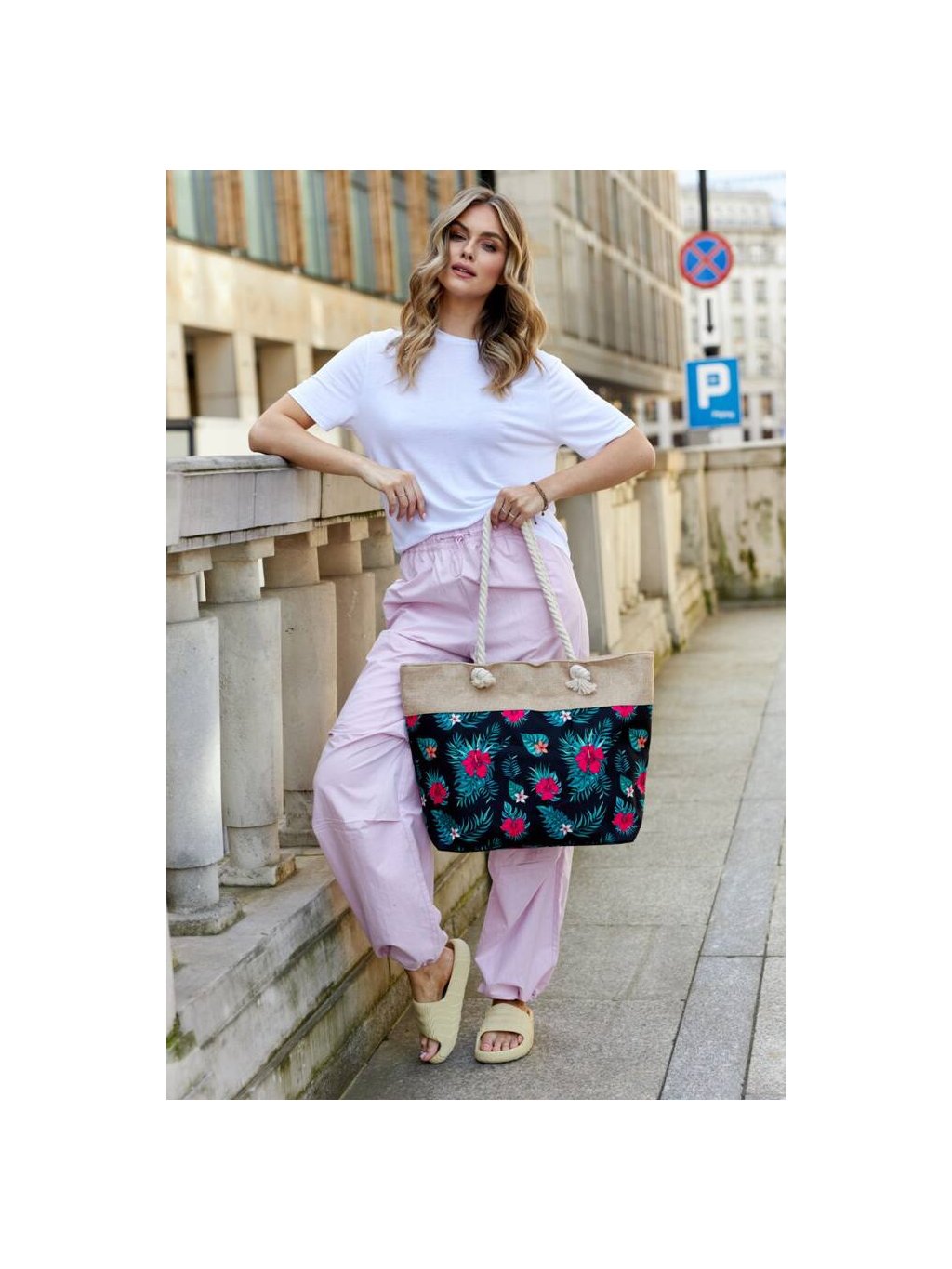 ČERNO-RŮŽOVÁ VZOROVANÁ PLÁŽOVÁ TAŠKA