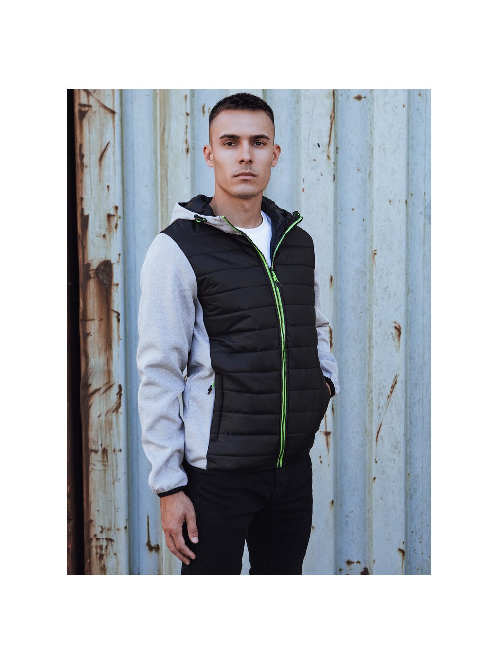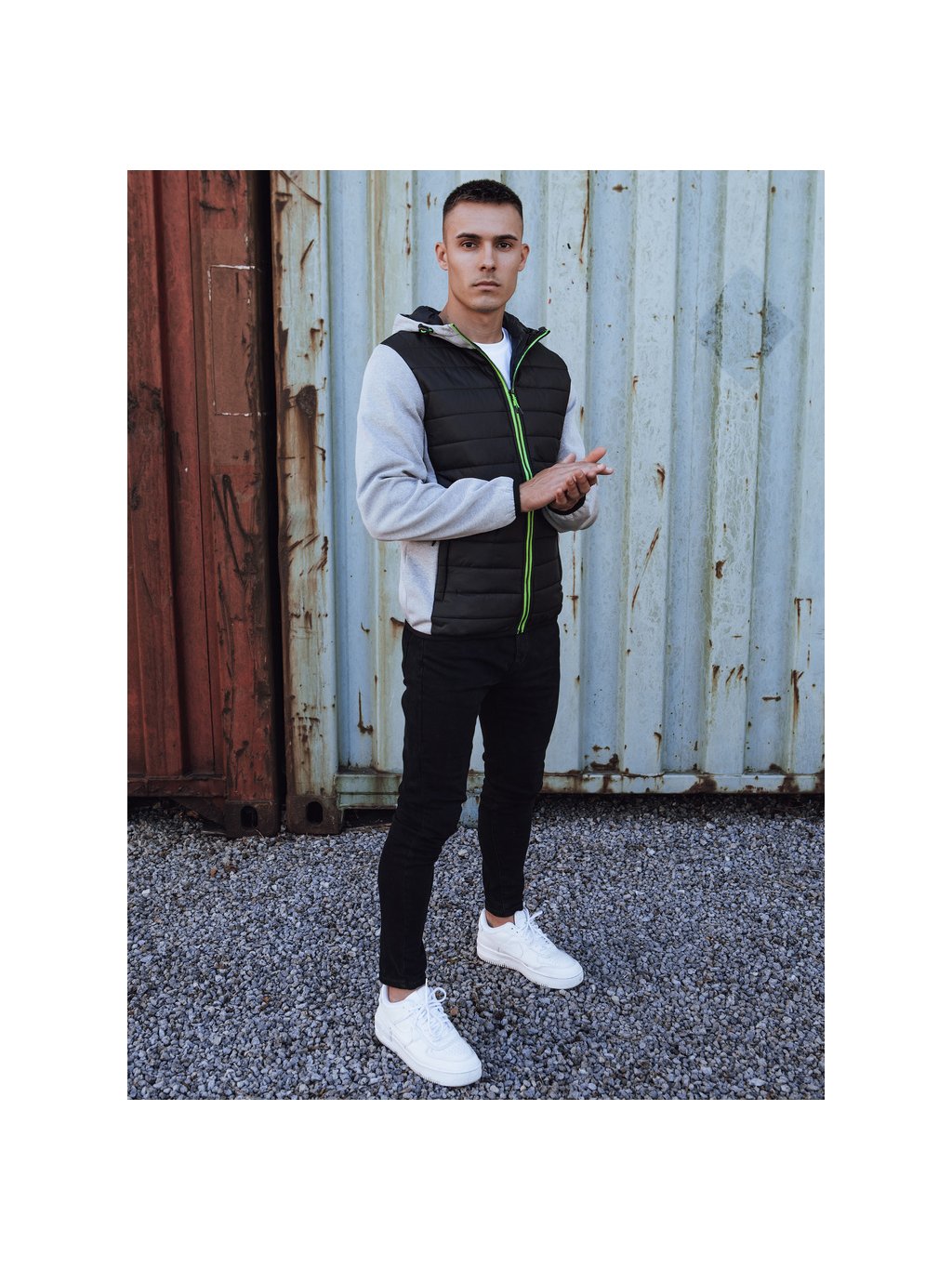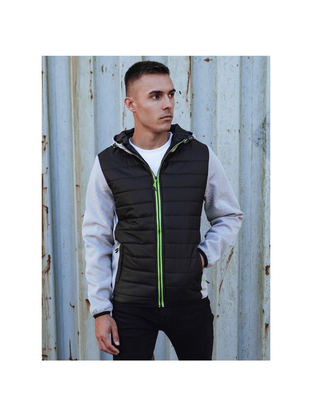 ČERNO-ŠEDÁ PÁNSKÁ PŘECHODOVÁ BUNDA S KAPUCÍ