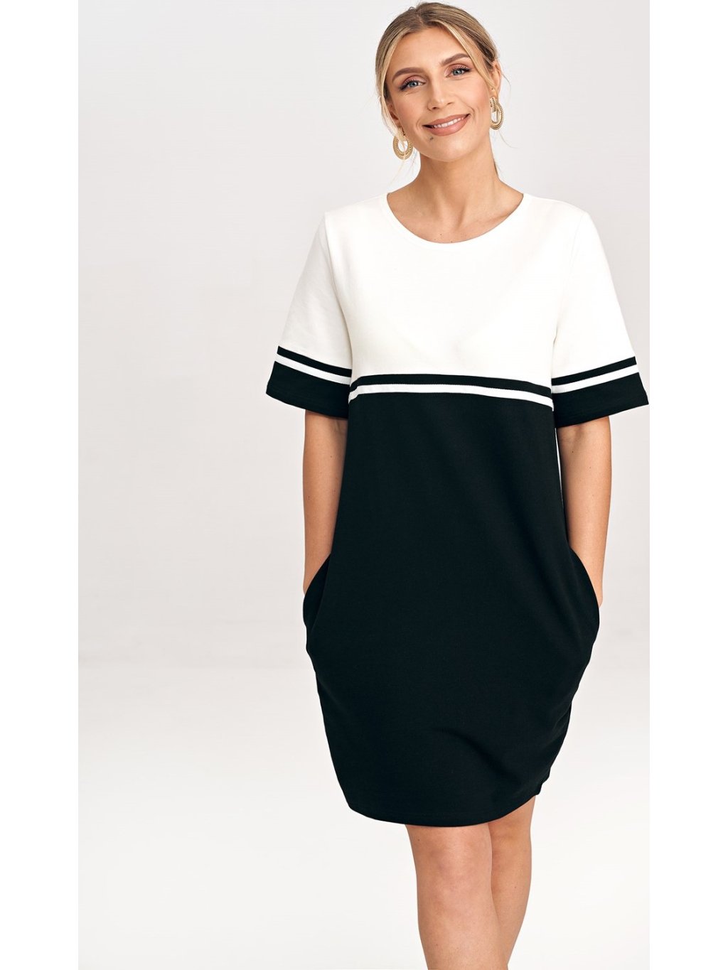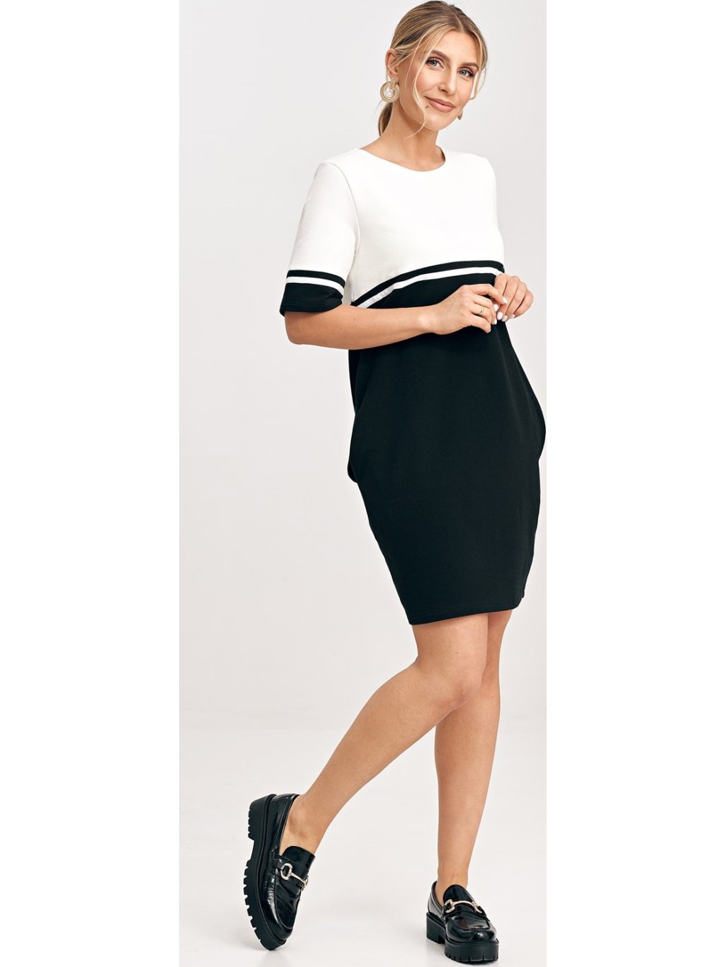 ČERNO-SMETANOVÉ ŠATY S KRÁTKÝM RUKÁVEM