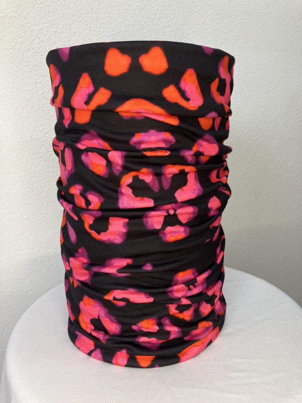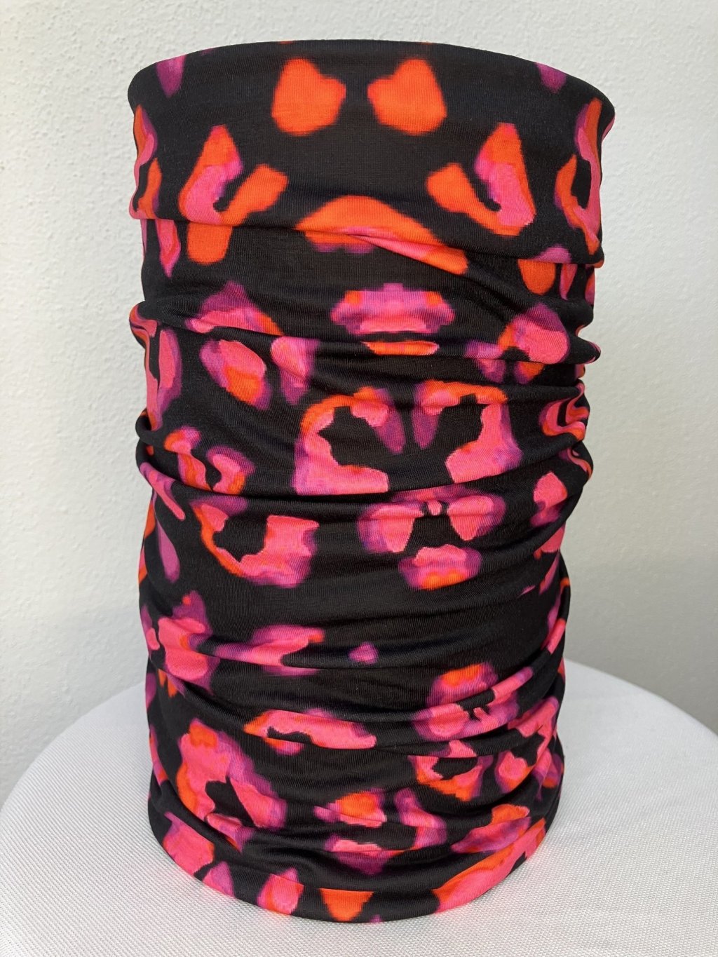 ČERNÝ DÁMSKÝ NÁKRČNÍK S RŮŽOVÝM LEOPARDÍM VZOREM