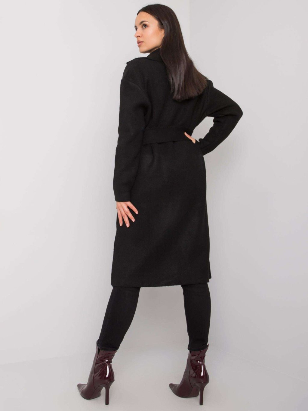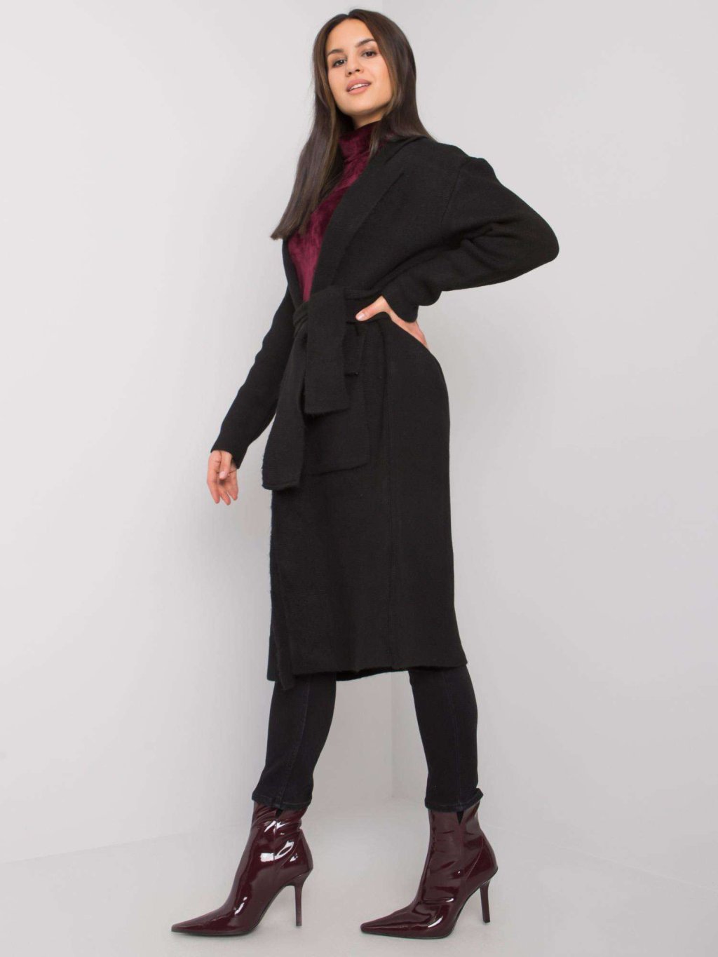 ČERNÝ DLOUHÝ PLETENÝ KARDIGAN S PÁSKEM