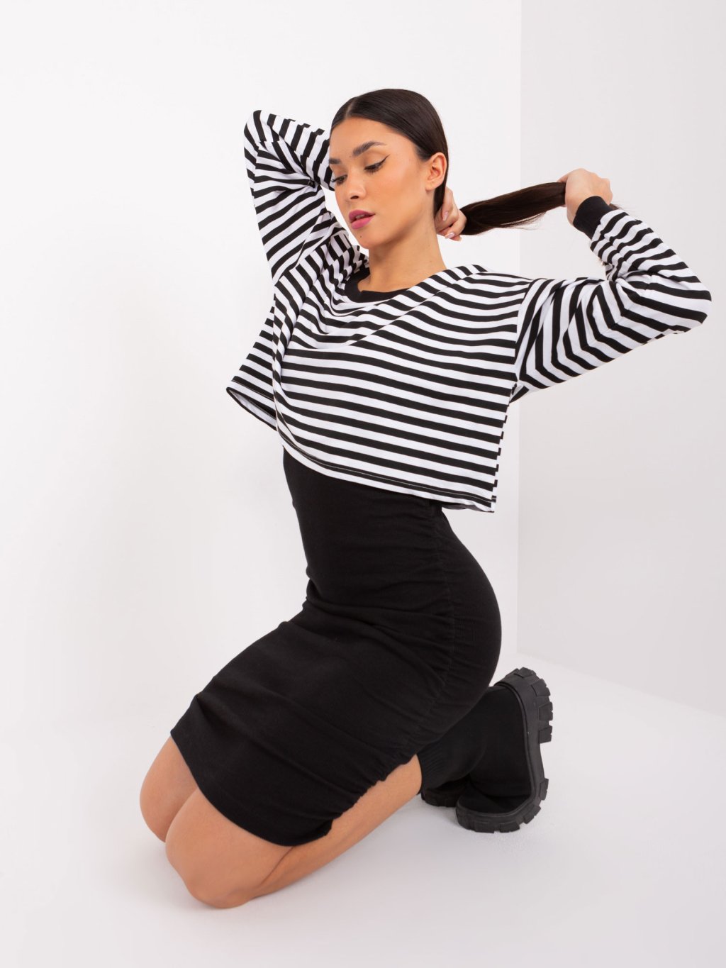 ČERNÝ KOMPLET ŠATŮ A PRUHOVANÉ HALENKY