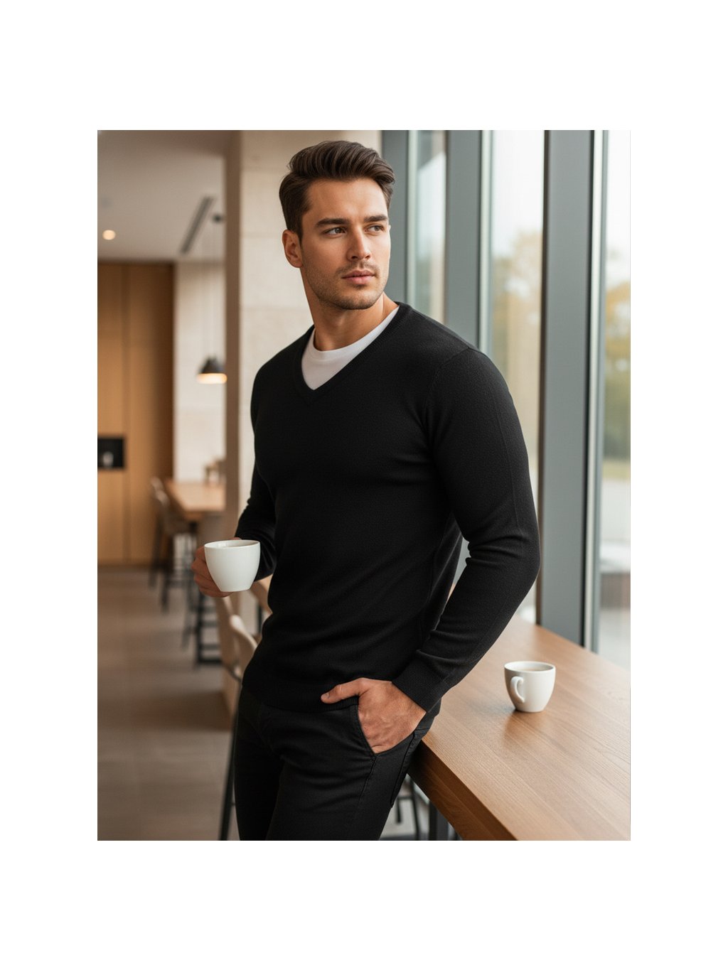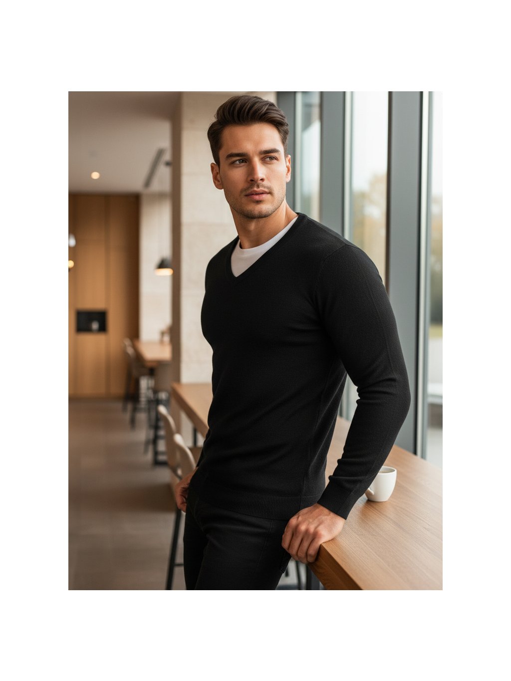 ČERNÝ PÁNSKÝ SVETR S VÝSTŘIHEM DO V