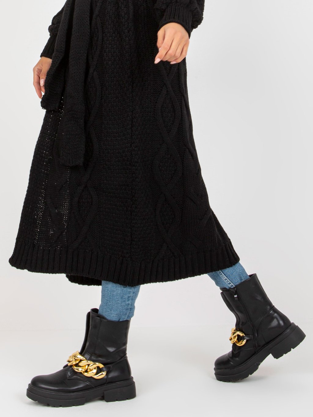 ČERNÝ PLETENÝ DLOUHÝ KARDIGAN NA ZAVAZOVÁNÍ