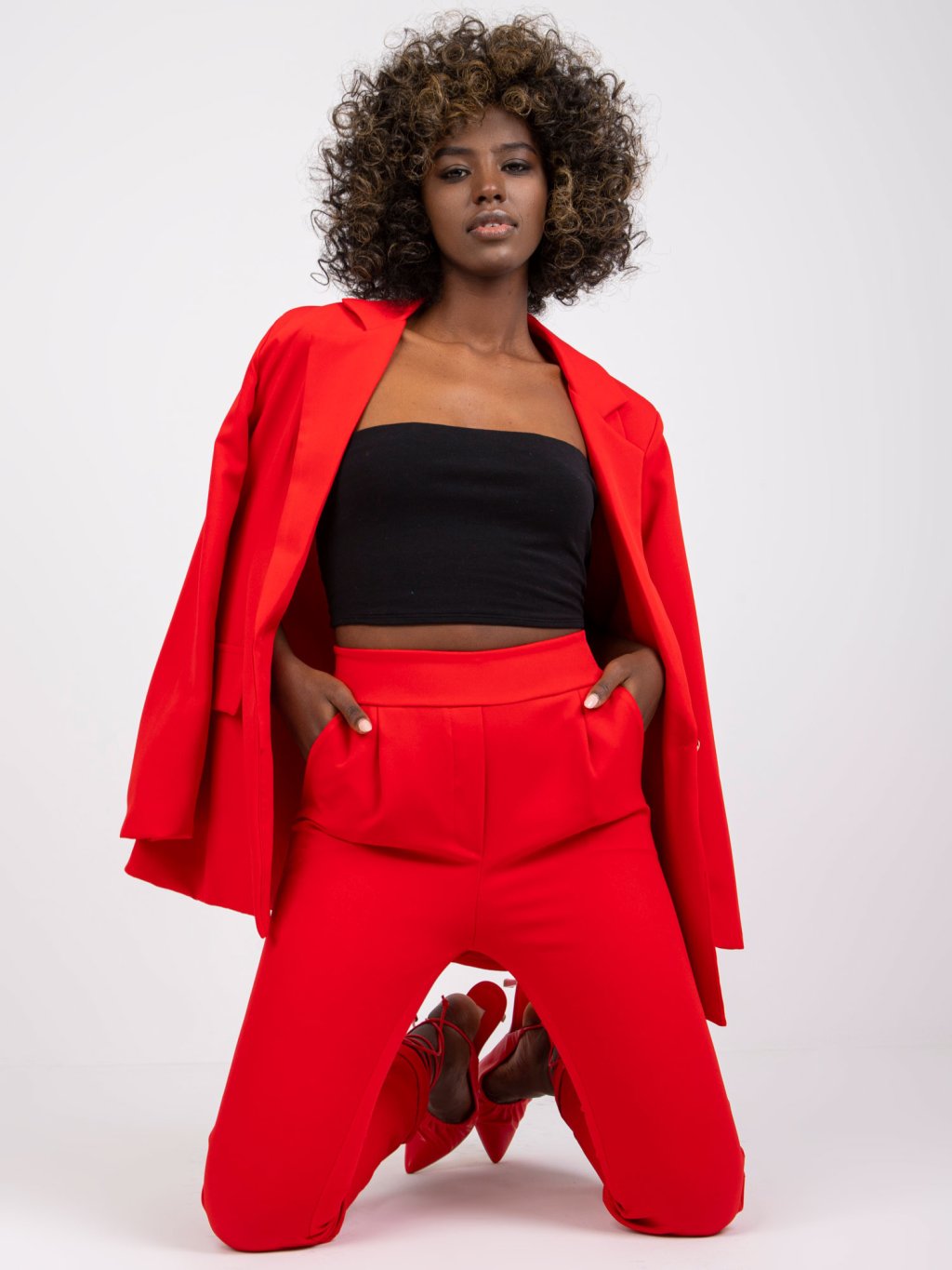 ČERVENÉ DÁMSKÉ KALHOTY HIDALGO S ELASTICKÝM PASEM