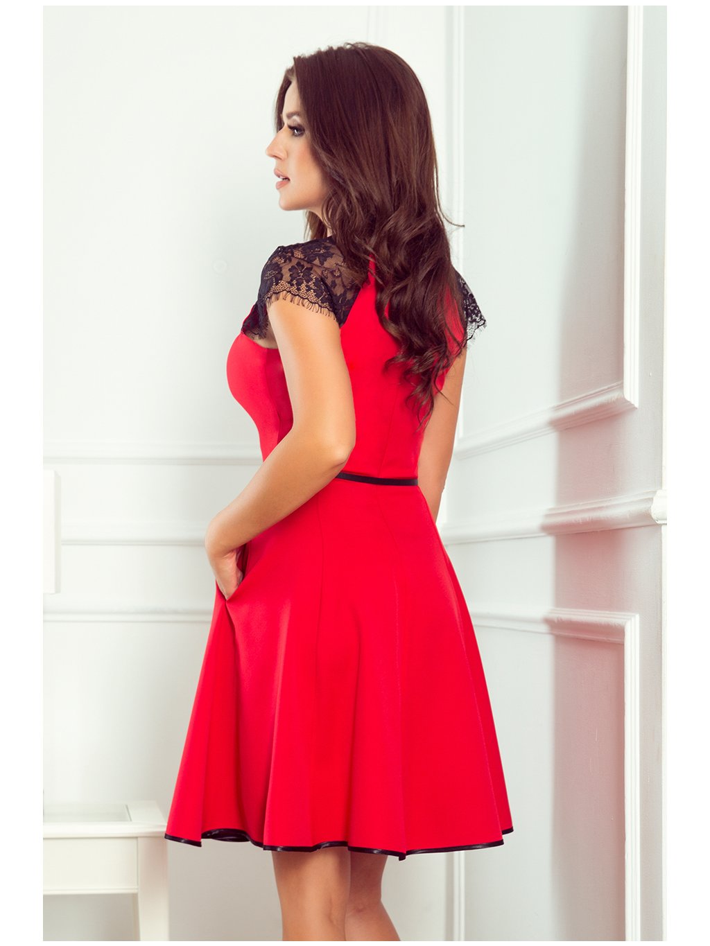 ČERVENÉ ŠATY S KRAJKOVÝMI RUKÁVY SILVIA