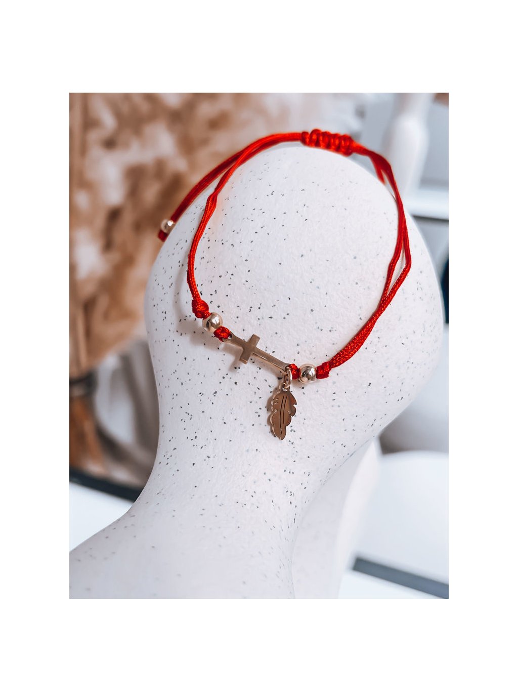 ČERVENÝ NÁRAMEK HEARTBEAT S KŘÍŽKEM A PEŘÍČKEM