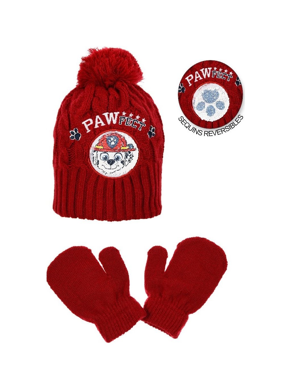 CHLAPECKÝ ČERVENÝ SET RUKAVIC A ČEPICE S TLAPKOVOU PATROLOU