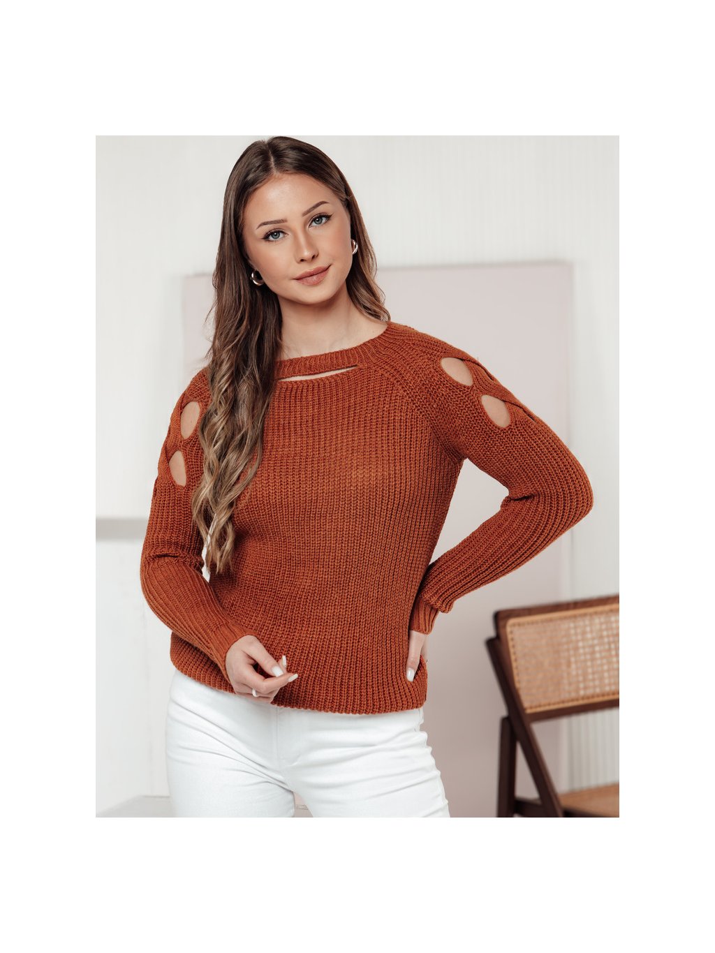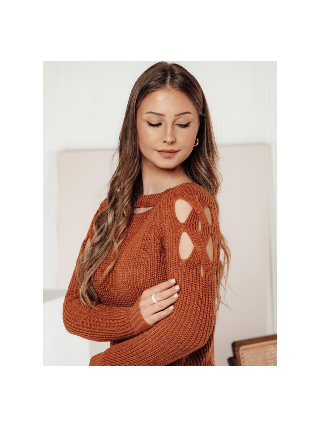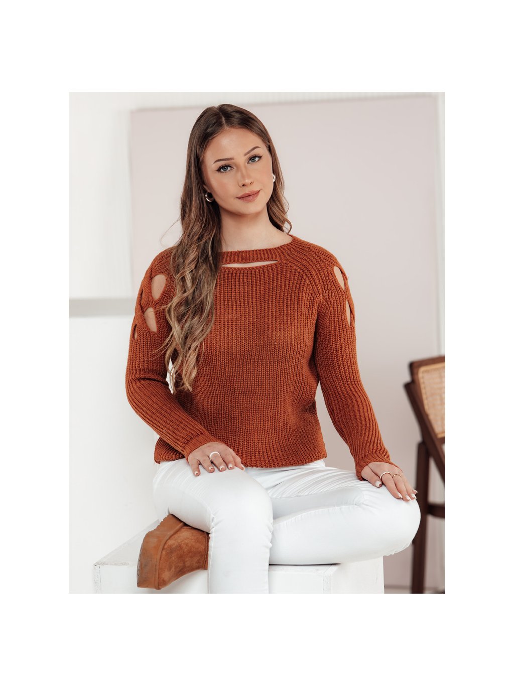CIHLOVÝ DÁMSKÝ SVETR S PRŮSTŘIHY SLITARIA