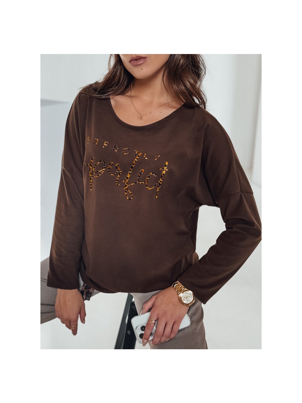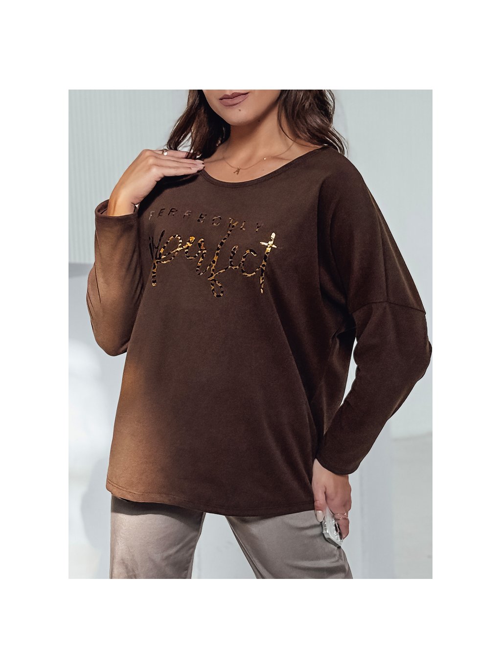 ČOKOLÁDOVĚ HNĚDÉ DÁMSKÉ OVERSIZE TRIČKO S NÁPISEM PERFSTYLE