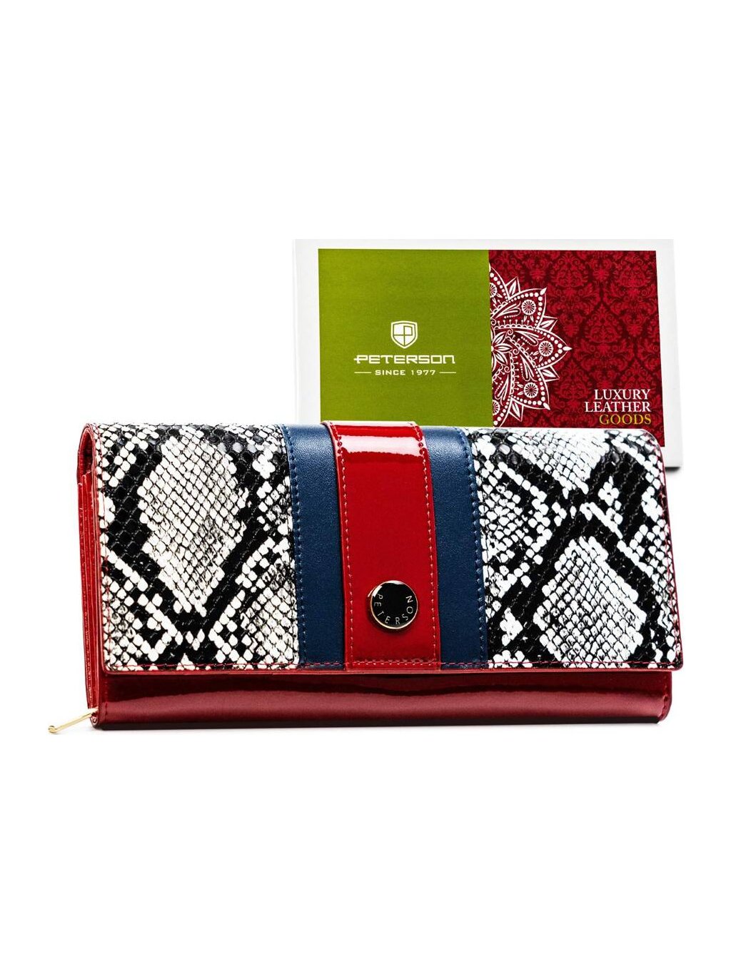 DÁMSKÁ ČERVENÁ PENĚŽENKA SE BÍLO-ČERNÝM VZOREM HADÍ KŮŽE PETERSON Y695