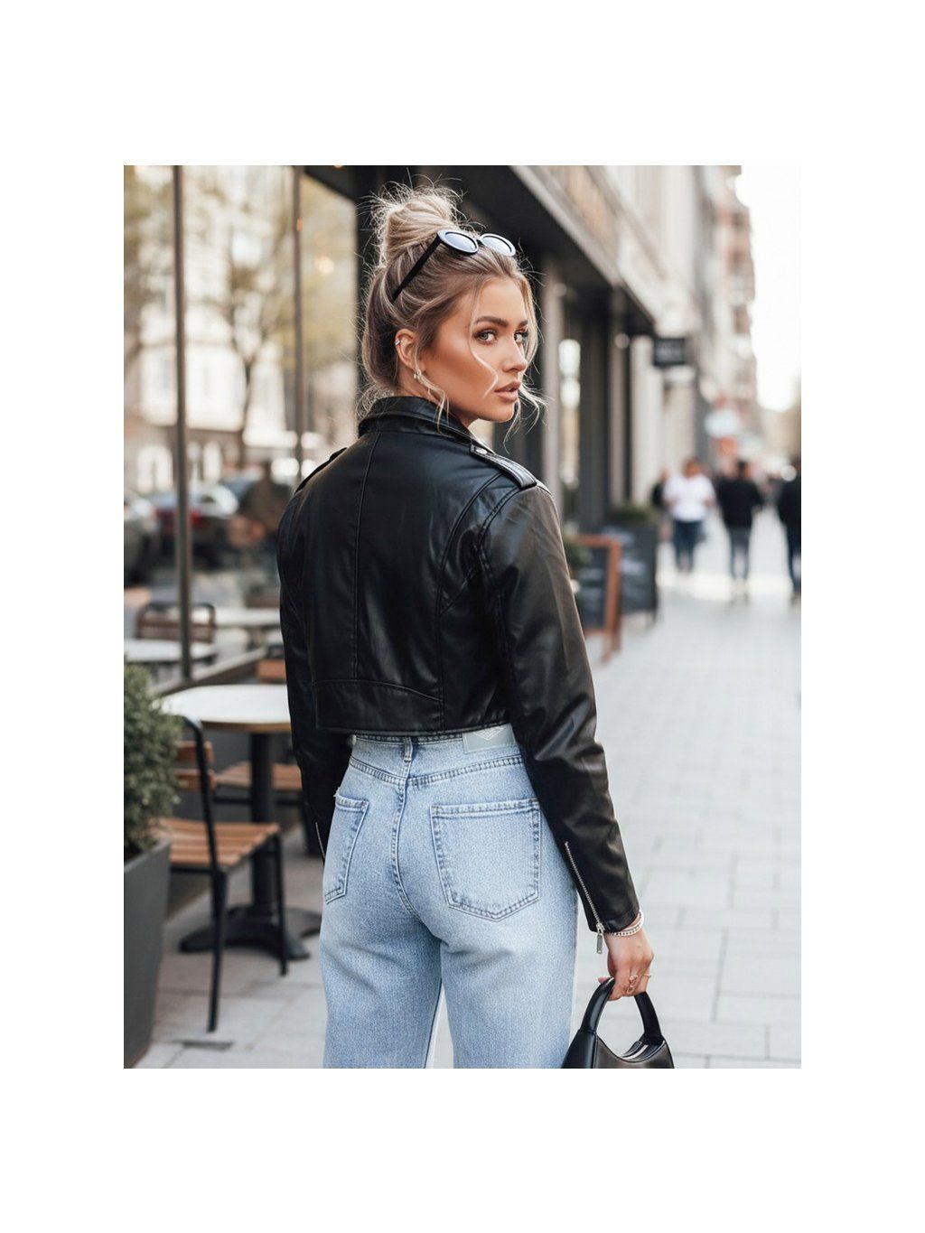 Dámská ramoneska v černém provedení zaujme ikonickým biker designem, který dodává outfitu výrazný a nadčasový charakter. Klasický střih skvěle zvýrazňuje siluetu a hodí se jak k ležérním, tak i elegantnějším outfitům.