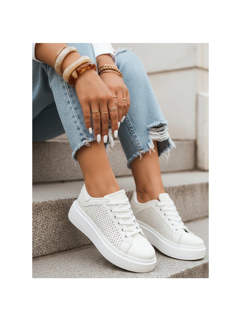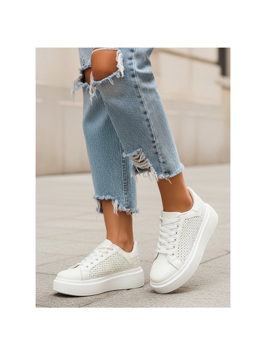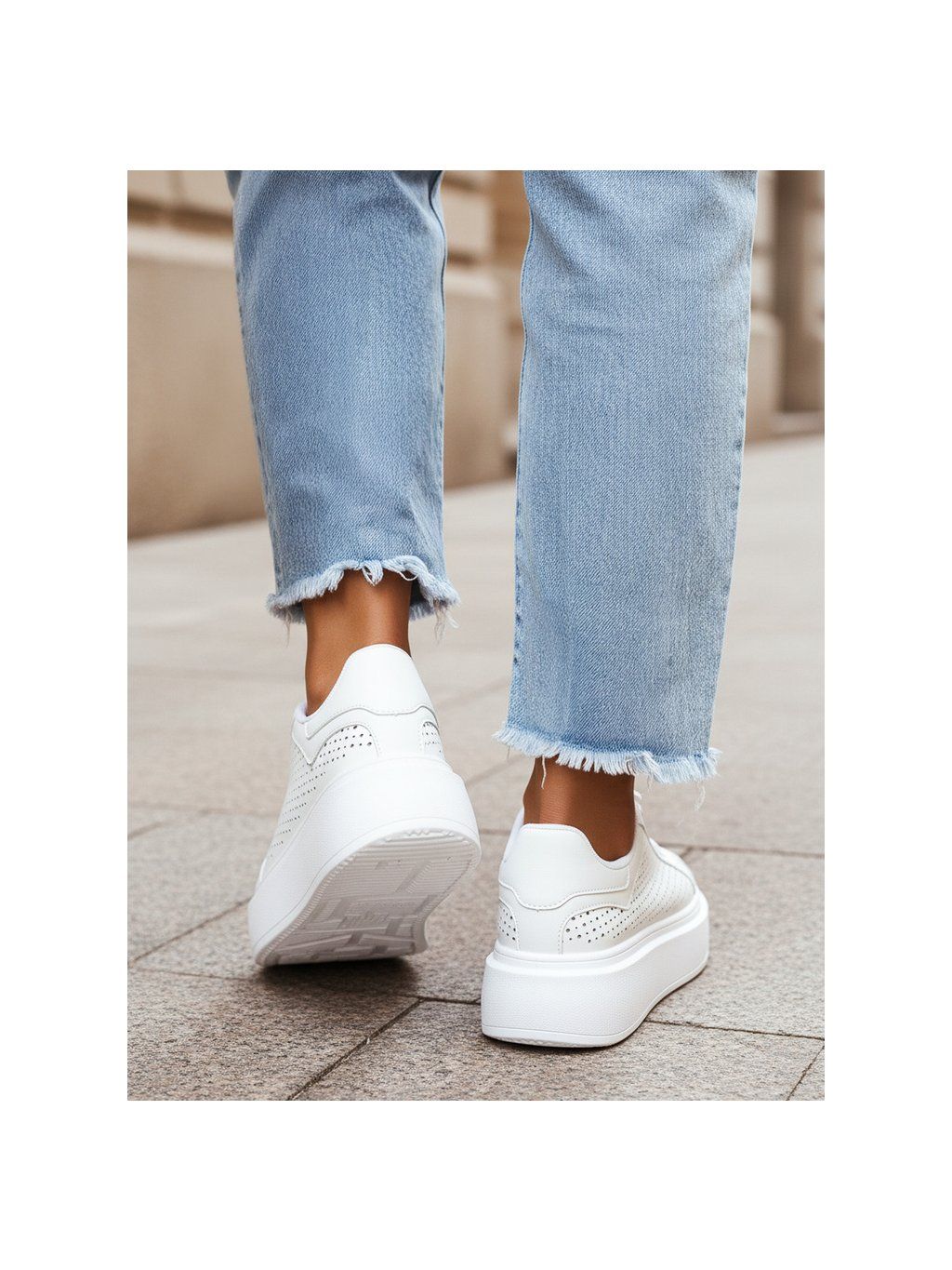 Vyšší podrážka opticky prodlužuje postavu a zároveň poskytuje pohodlí a stabilitu při chůzi. Bílé provedení působí svěže a univerzálně, díky čemuž se tenisky hodí téměř ke každému stylu.