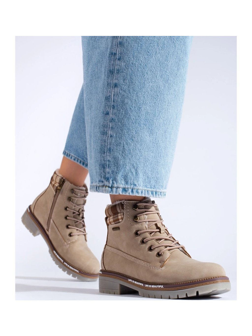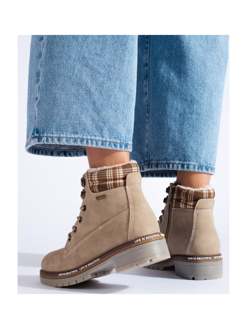 DÁMSKÉ BÉŽOVÉ WORKERY S KÁROVANOU VSADKOU
