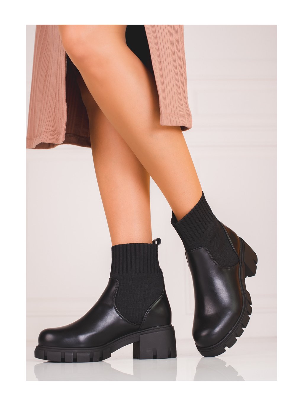 DÁMSKÉ ČERNÉ KOTNÍKOVÉ BOTY S PRUŽNÝM SVRŠKEM