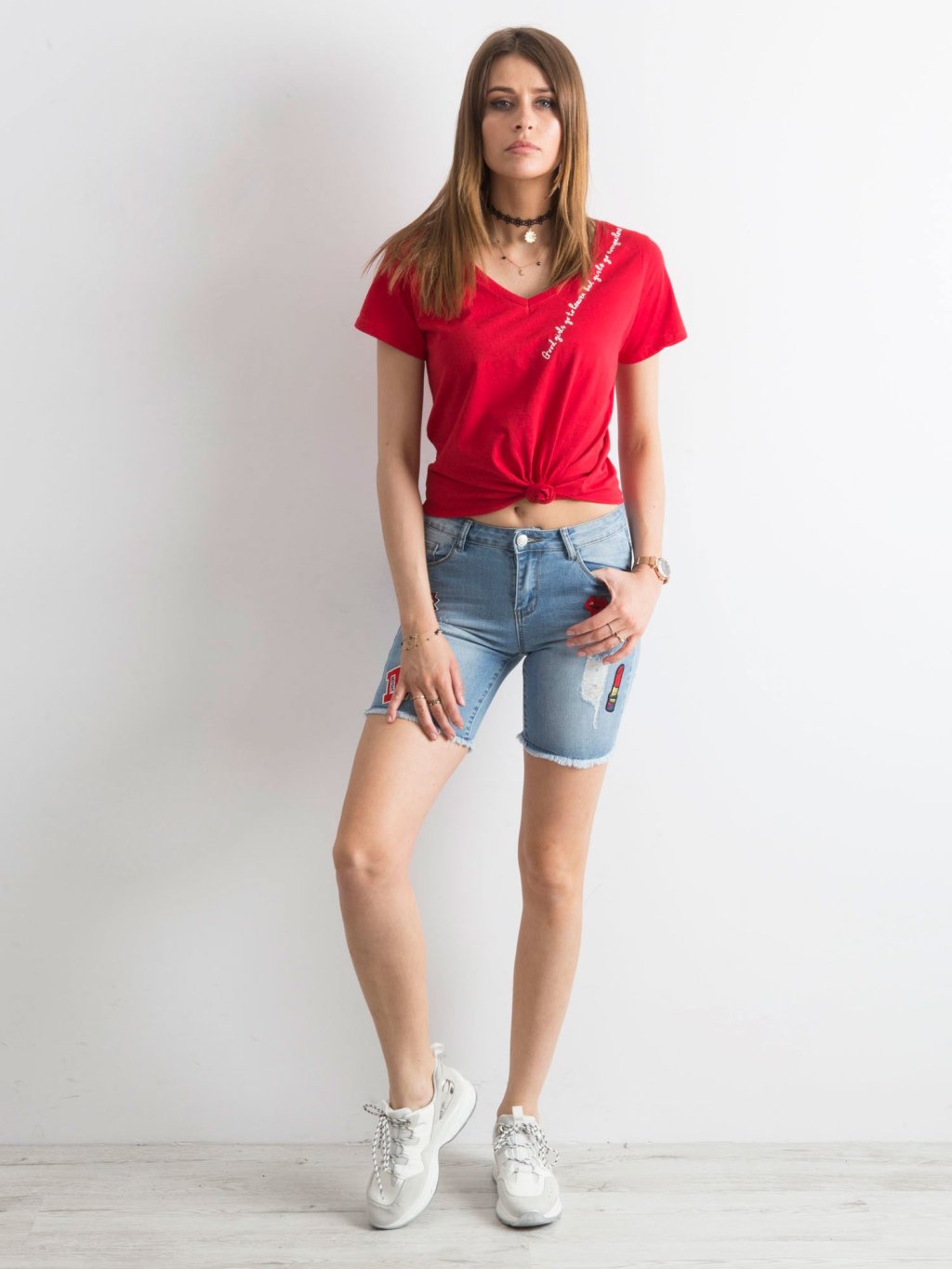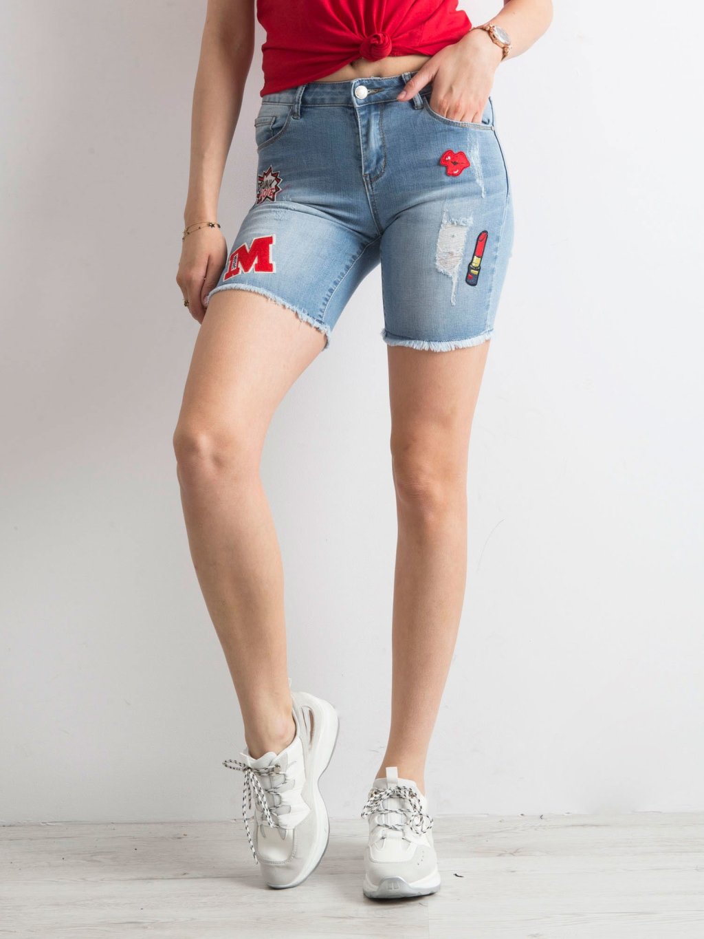 DÁMSKÉ DŽÍNOVÉ ŠORTKY S VYŠŠÍM PASEM A NÁŠIVKAMI