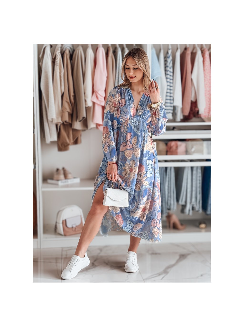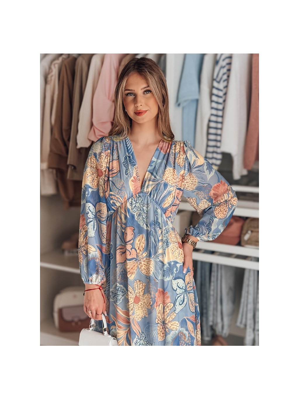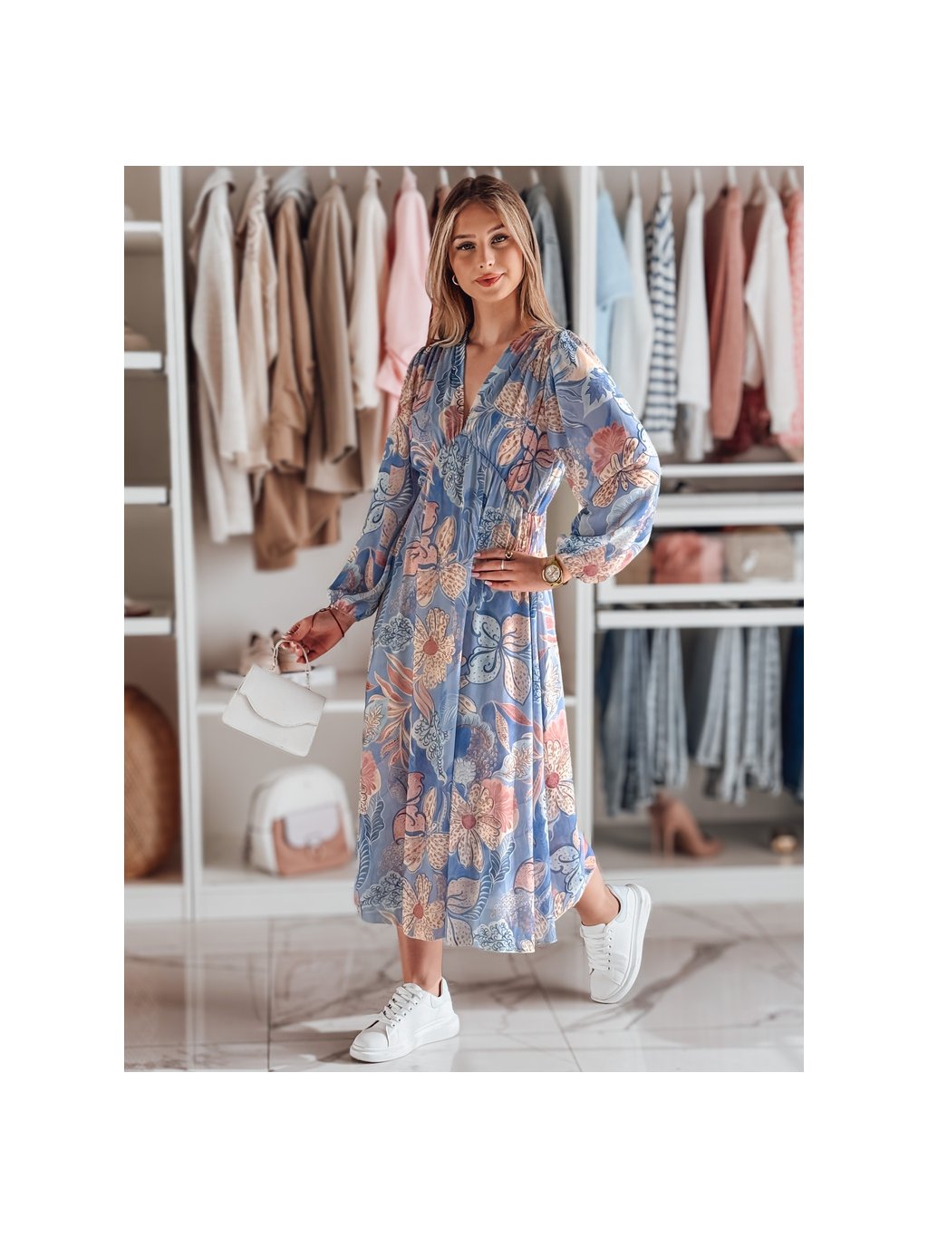 DÁMSKÉ MODRÉ KVĚTOVANÉ LEHKÉ MIDI ŠATY LILOVIE