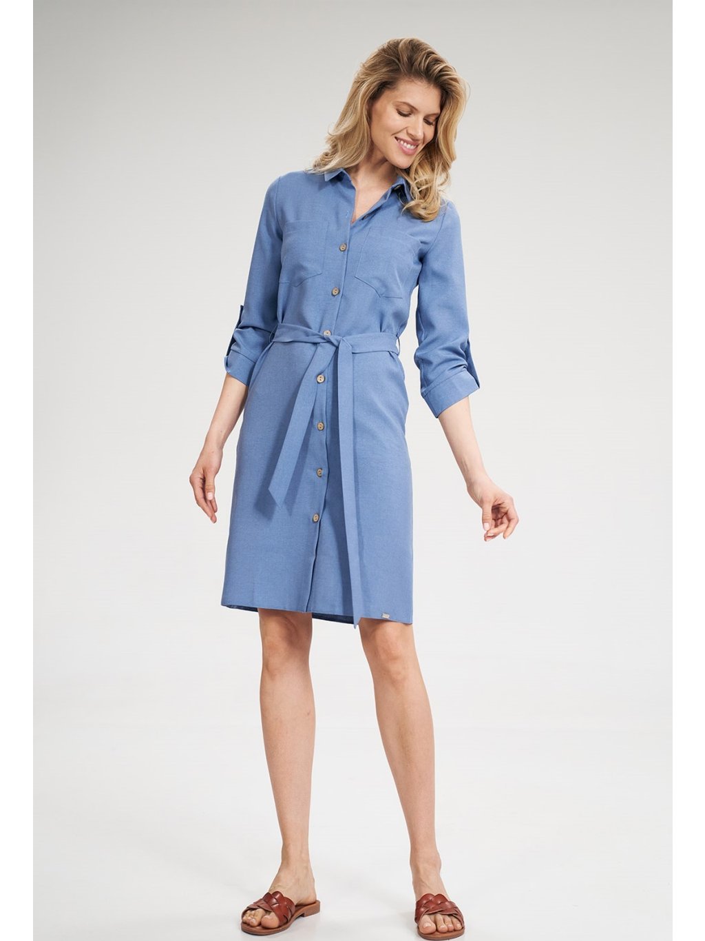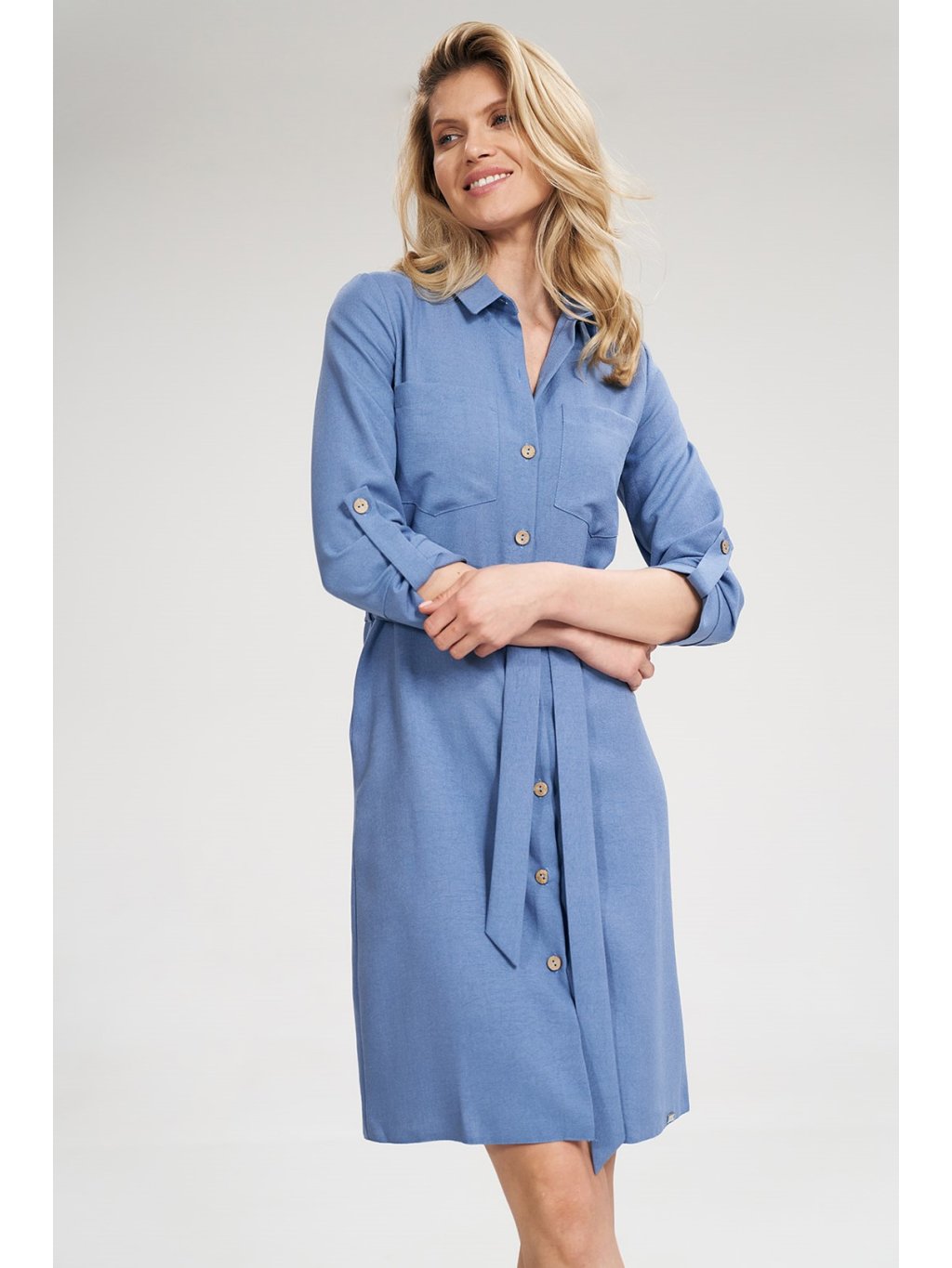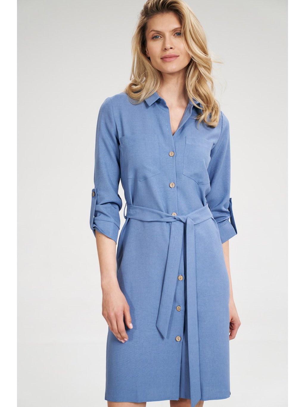 DÁMSKÉ MODRÉ ŠATY NA KNOFLÍKY