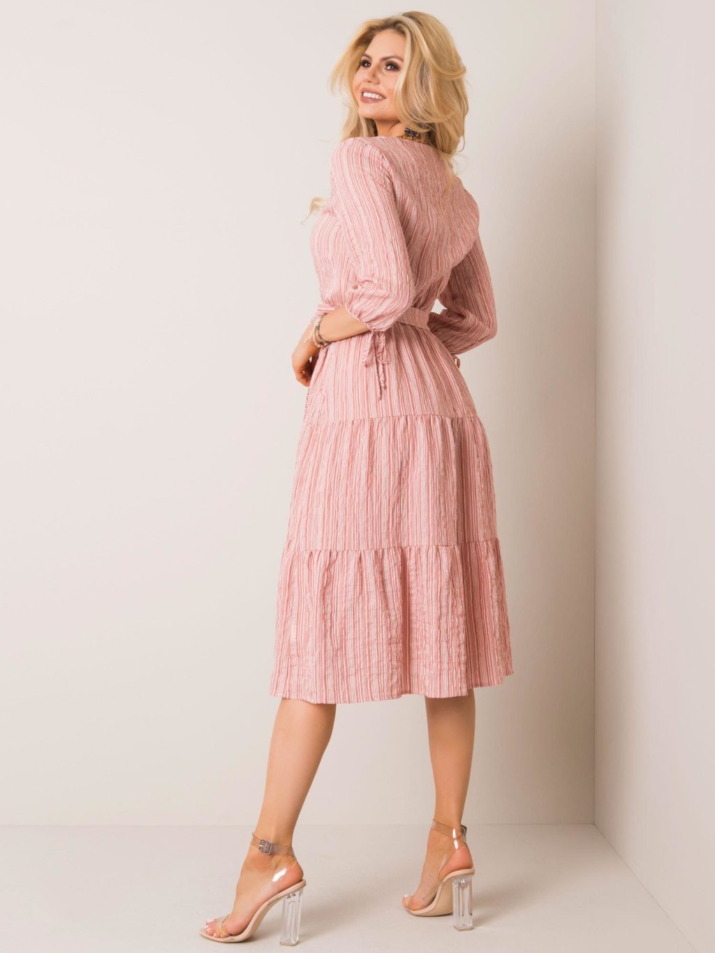DÁMSKÉ RŮŽOVÉ ŠATY S PÁSKEM