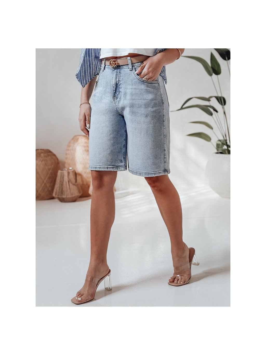 DÁMSKÉ SVĚTLE MODRÉ DŽÍNOVÉ KRAŤASY KE KOLENŮM JEANZDA