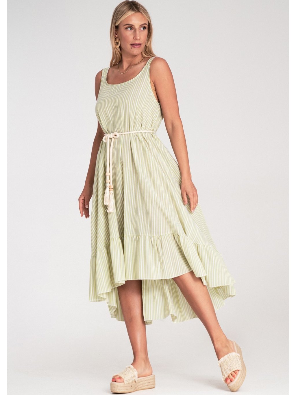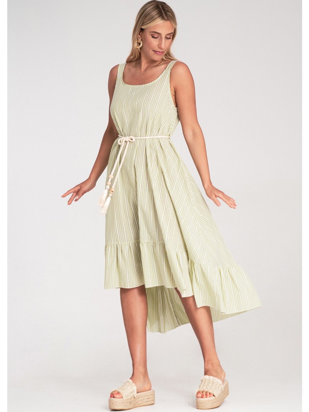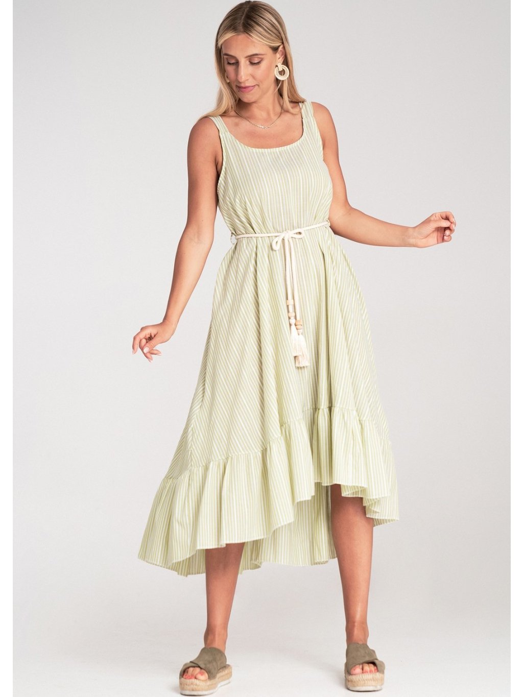 DÁMSKÉ SVĚTLE ZELENÉ BAVLNĚNÉ ŠATY S PROUŽKY A TŘÁSNĚMI