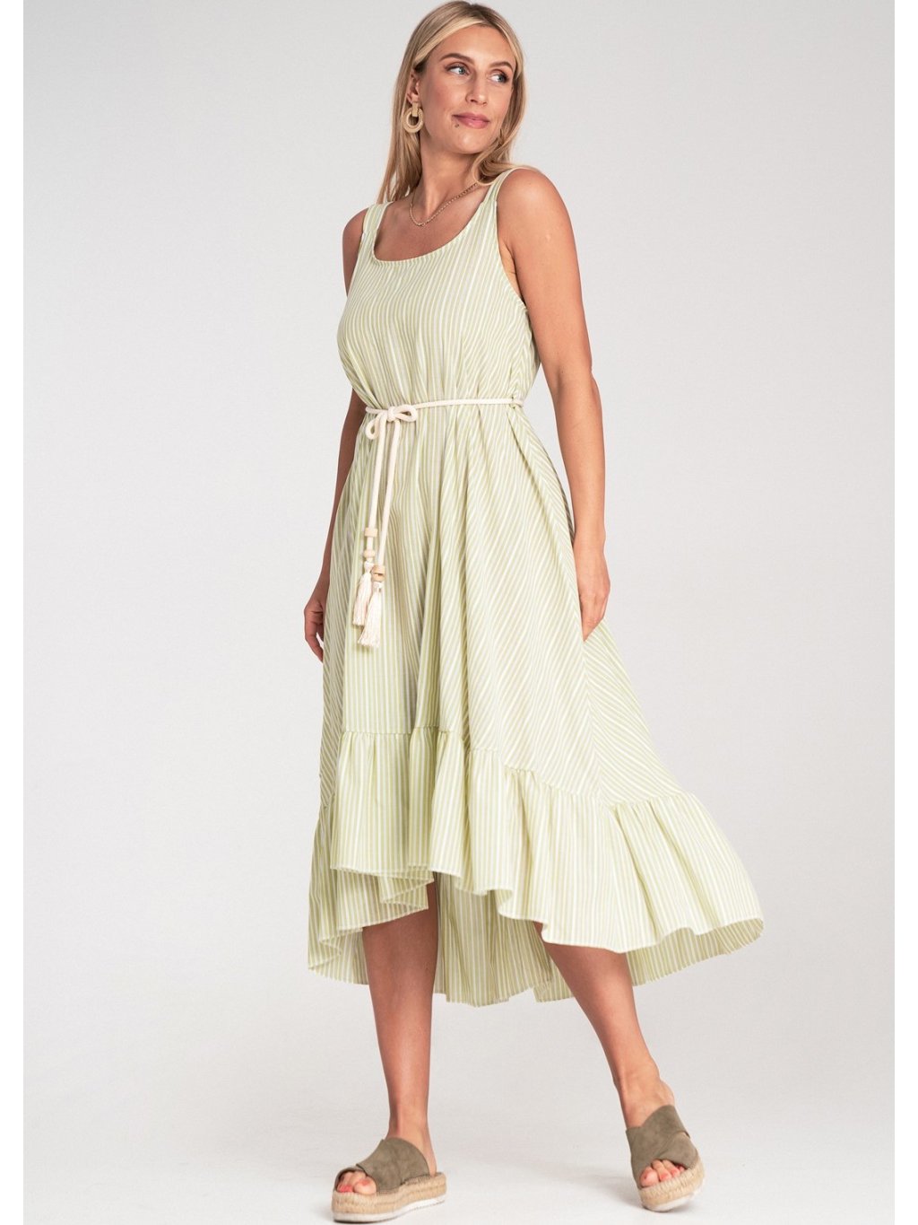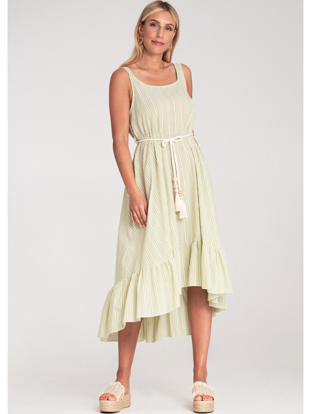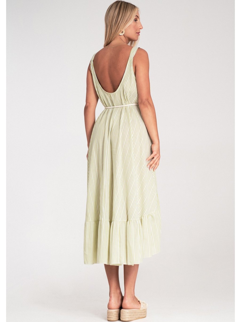 DÁMSKÉ SVĚTLE ZELENÉ BAVLNĚNÉ ŠATY S PROUŽKY A TŘÁSNĚMI
