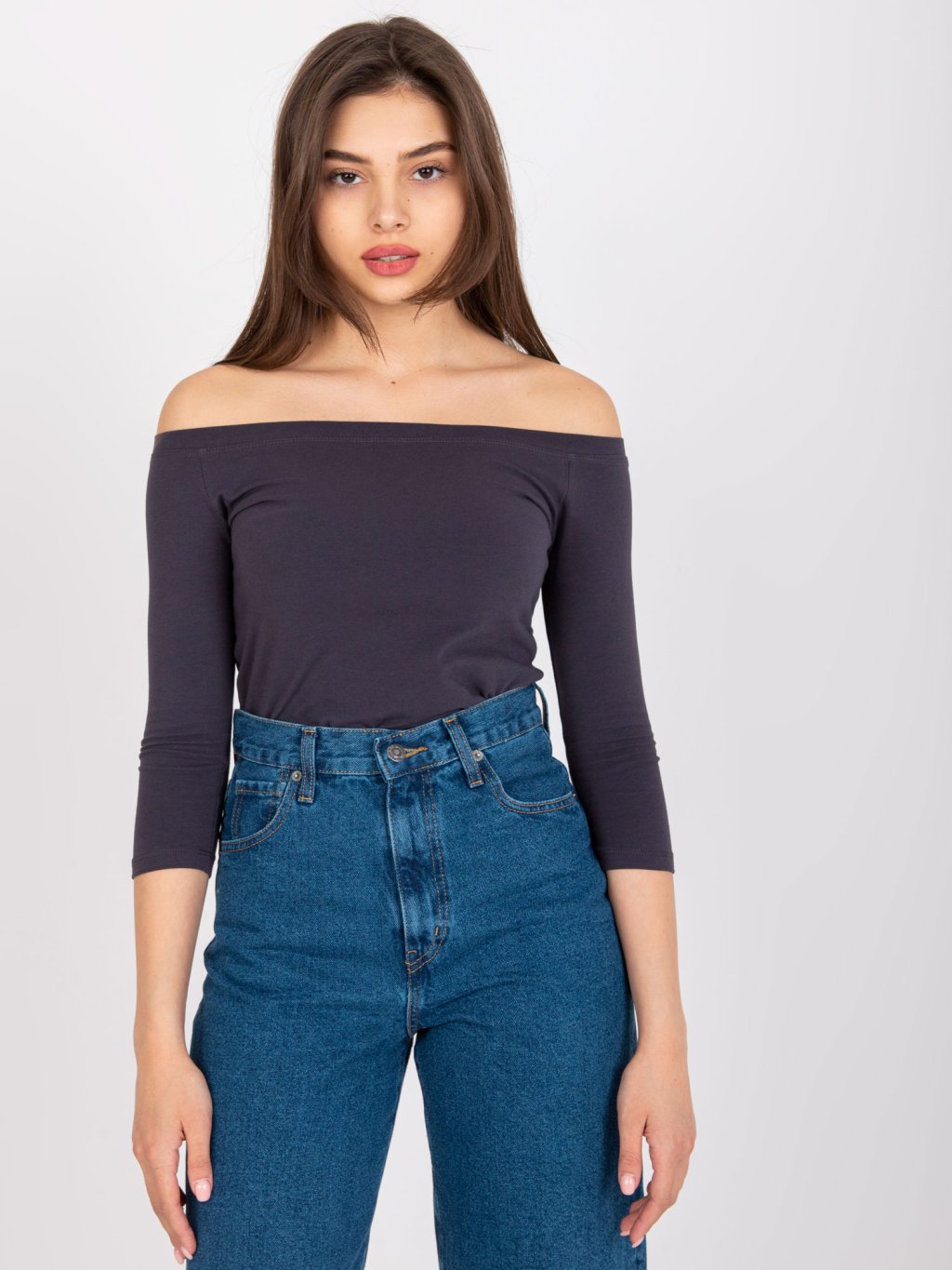 DÁMSKÝ ŠEDÝ TOP S ODHALENÝMI RAMENY