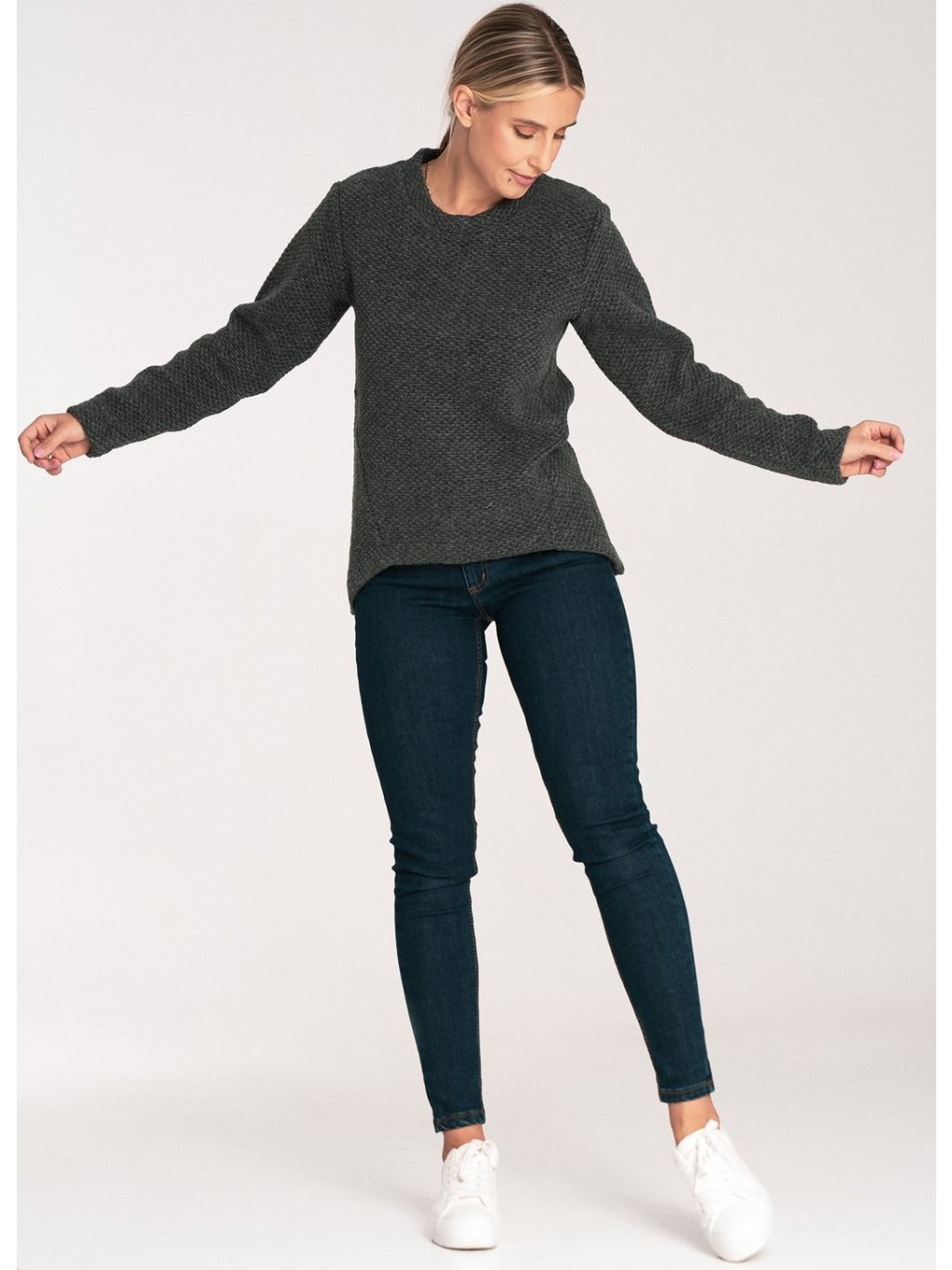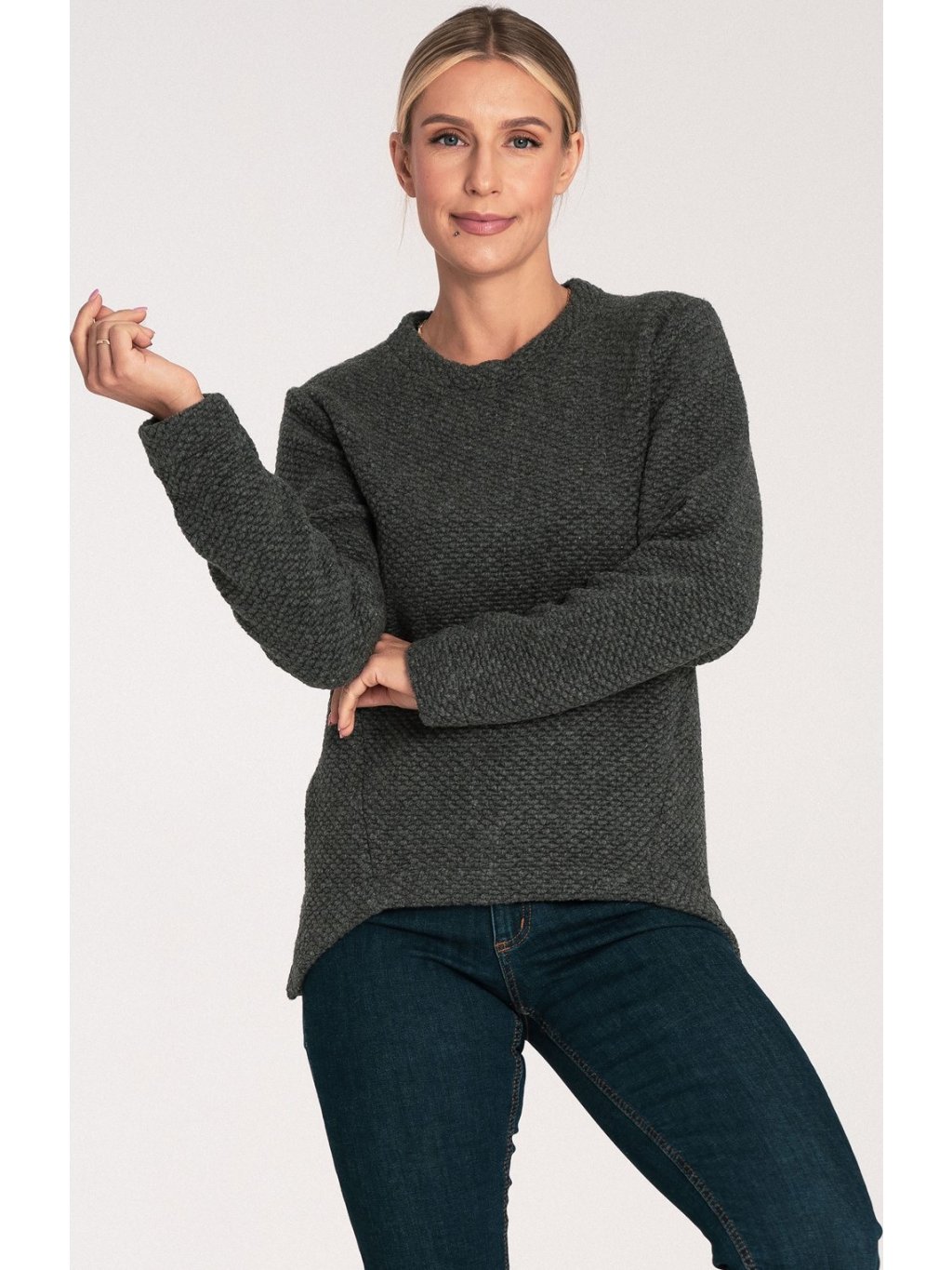 DÁMSKÝ TMAVĚ ŠEDÝ ASYMETRICKÝ SVETR