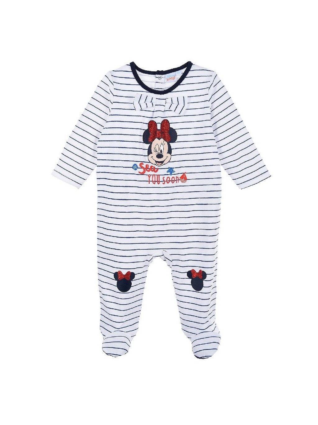 - Pruhovaný vzor, potisky Minnie Mouse.