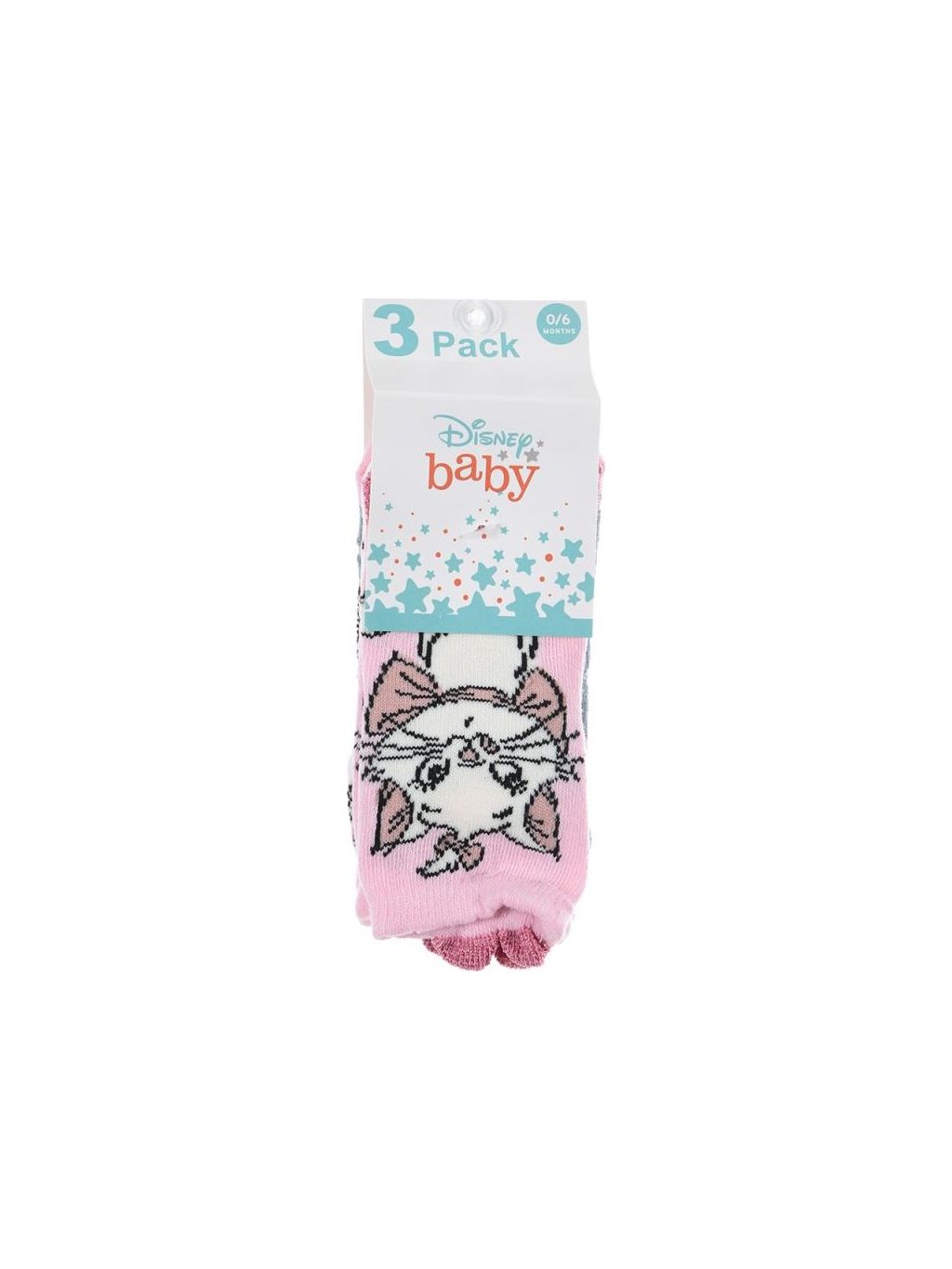 DISNEY BABY PONOŽKY - 3 PÁRY - RŮŽOVÁ/ŠEDÁ/BÍLÁ