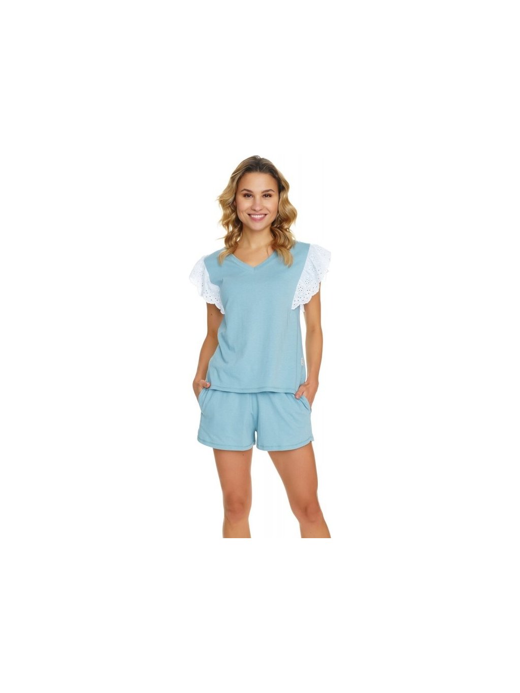 DOCTOR NAP SVĚTLE MODRÉ KRÁTKÉ PYŽAMO S KRAJKOU