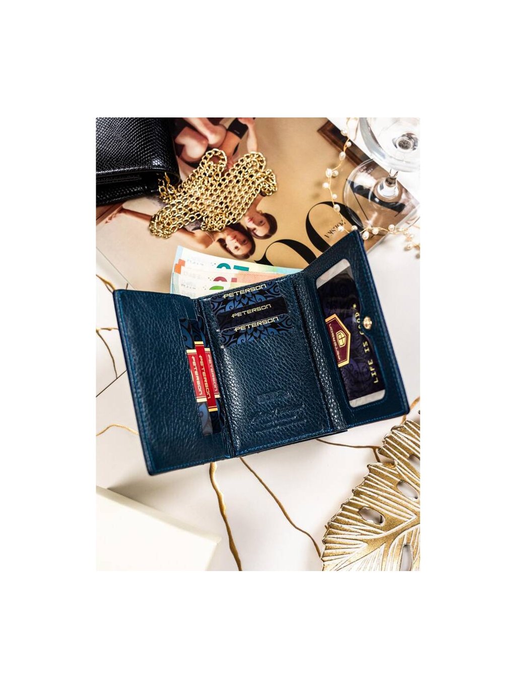 ELEGANTNÍ DÁMSKÁ TMAVĚ MODRÁ PENĚŽENKA Z PŘÍRODNÍ KŮŽE PETERSON Y727