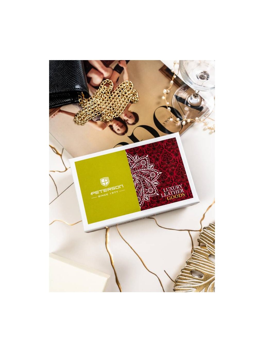 - peněženka je zabalena v originální, dekorativní krabičce