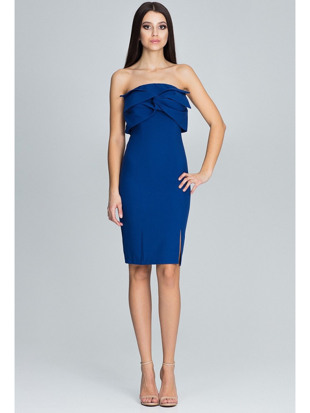 ELEGANTNÍ MODRÉ ŠATY BEZ RAMÍNEK