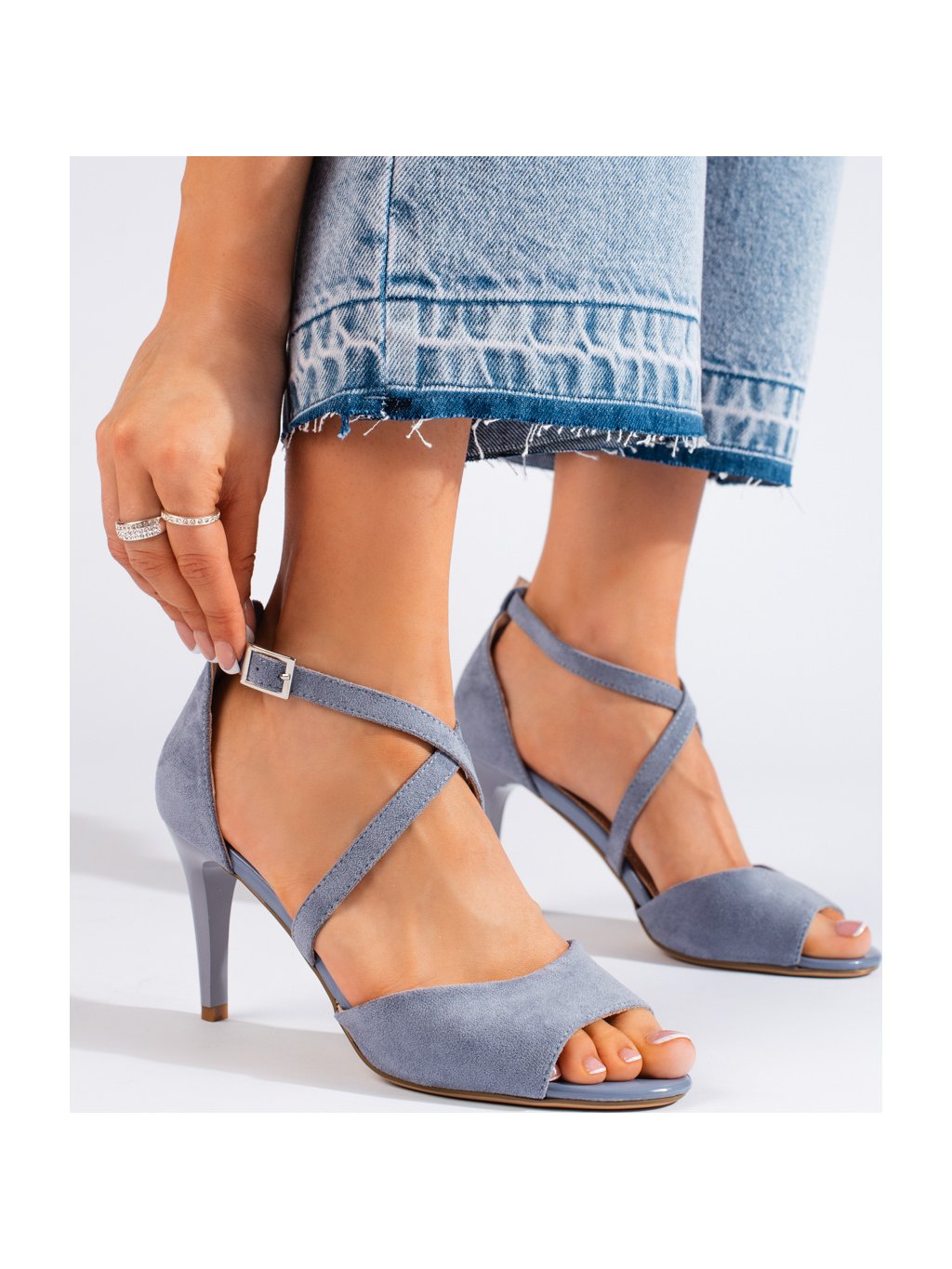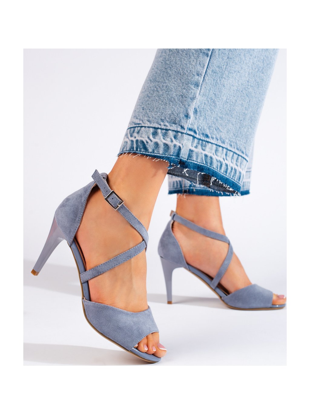 ELEGANTNÍ SVĚTLE MODRÉ SANDÁLY NA TENKÉM PODPATKU
