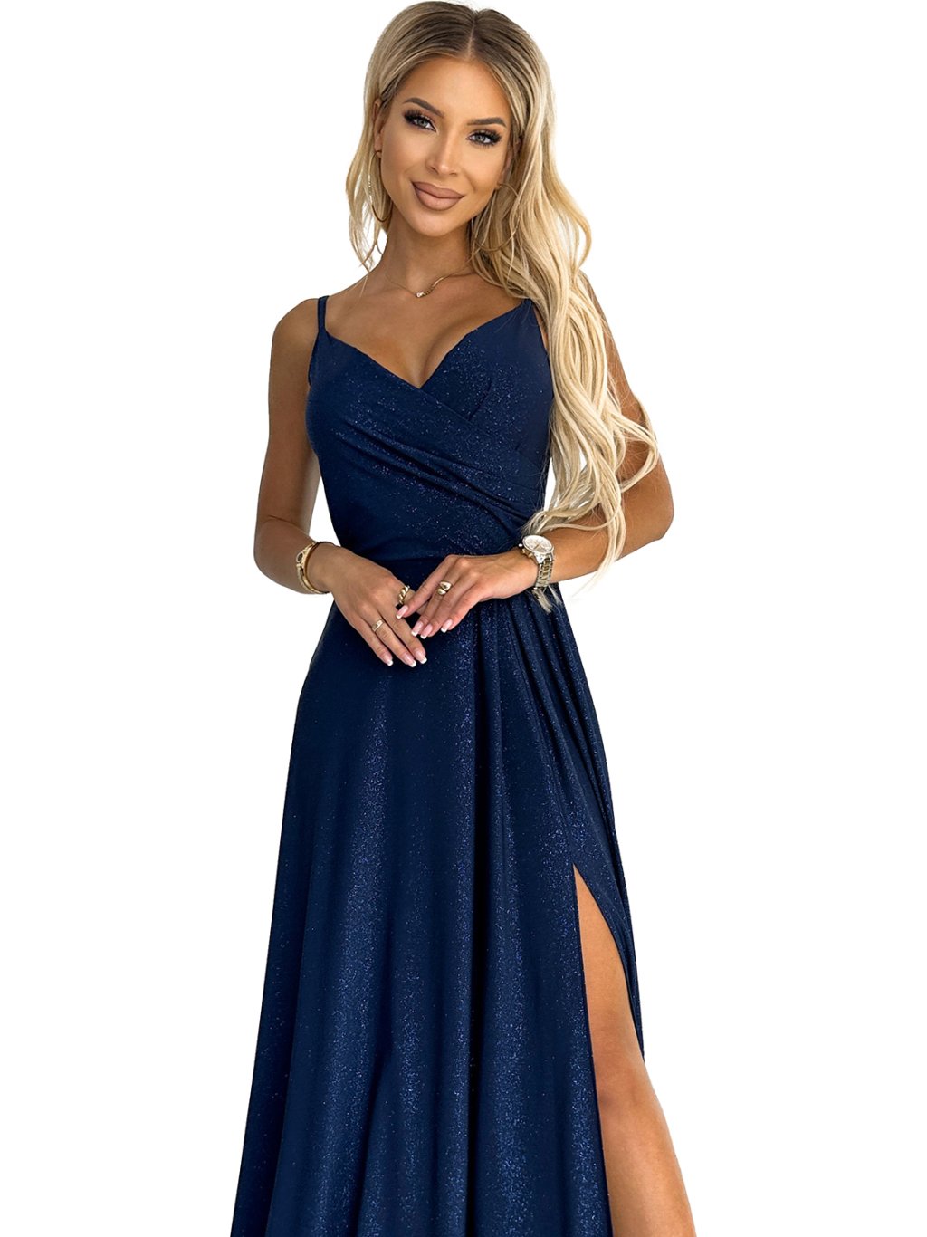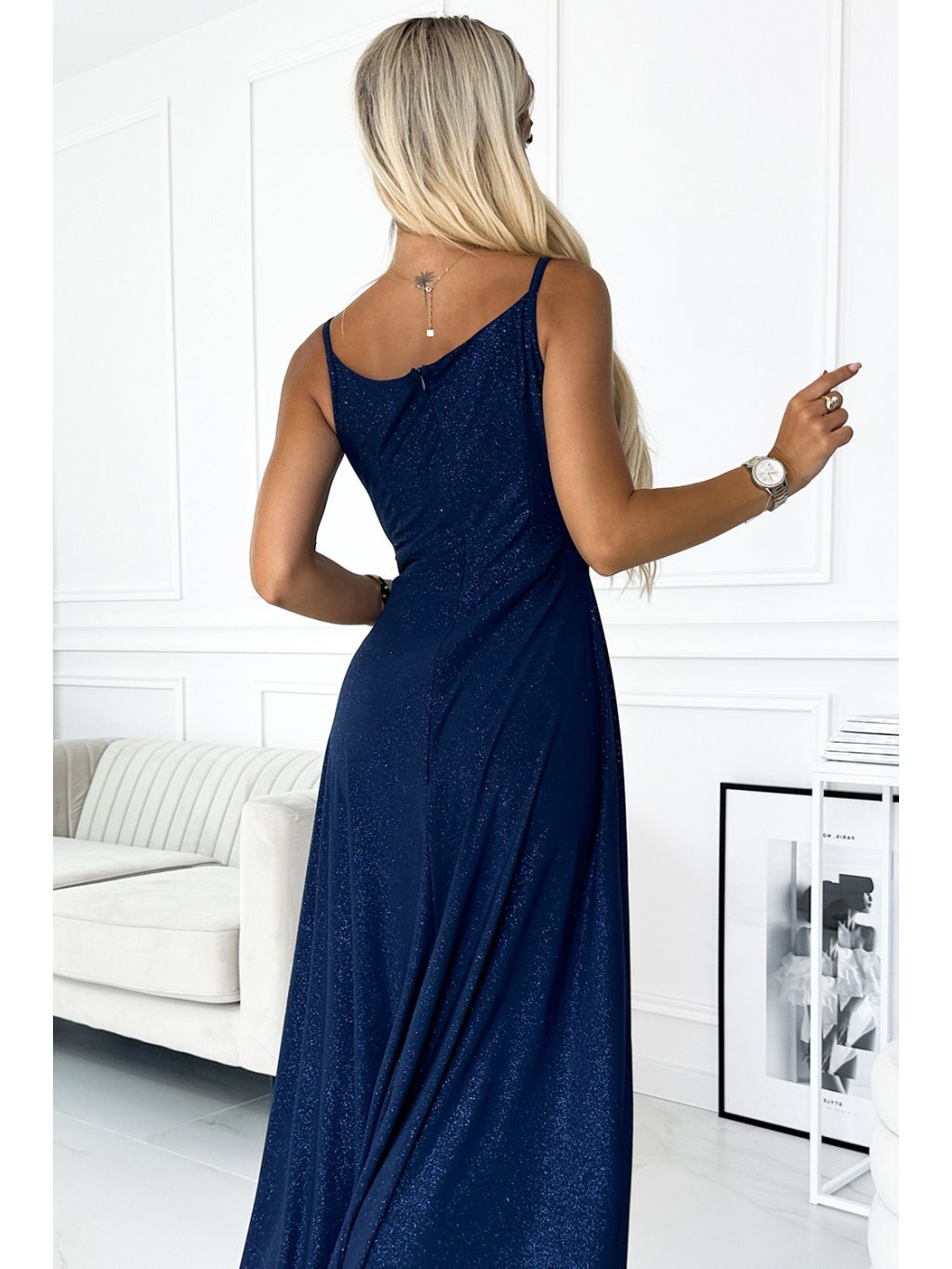 ELEGANTNÍ TMAVĚ MODRÉ MAXI ŠATY SE TŘPYTKAMI DANIELE