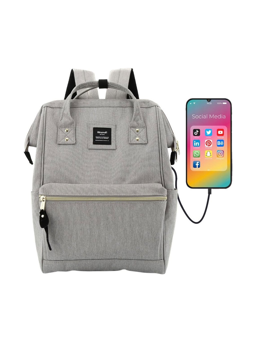 HIMAWARI PROSTORNÝ ŠEDÝ DÁMSKÝ BATOH S USB PORTEM A KAPSOU NA NOTEBOOK
