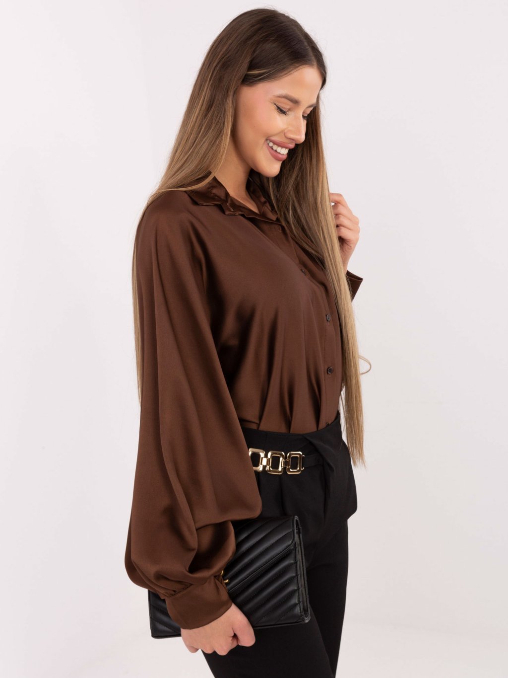 HNĚDÁ DÁMSKÁ ELEGANTNÍ KOŠILE S BALÓNOVÝMI RUKÁVY