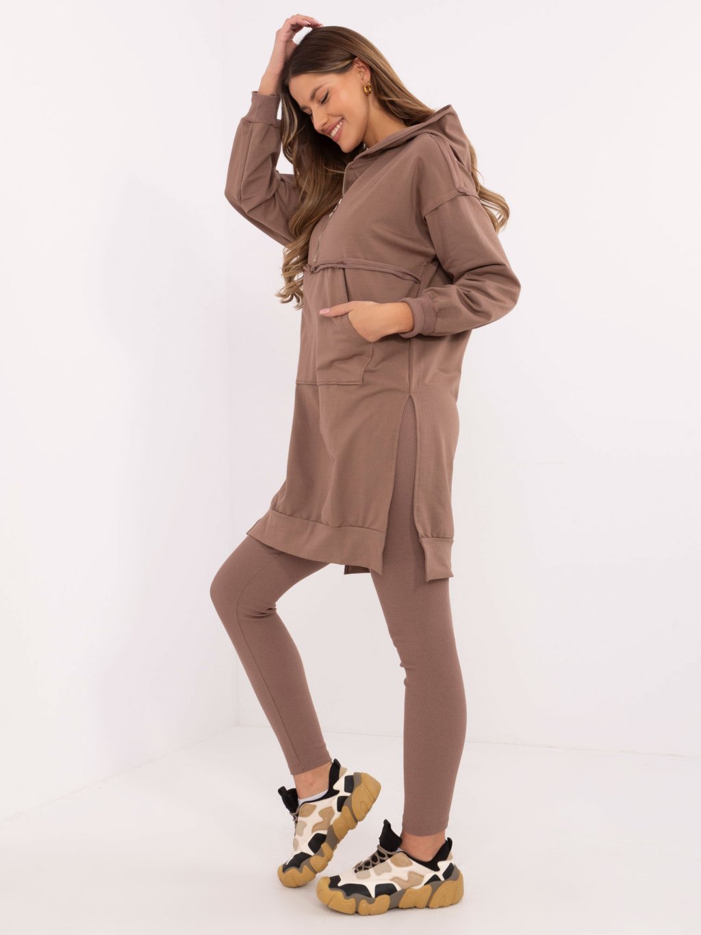 HNĚDÁ DÁMSKÁ SOUPRAVA S DLOUHOU MIKINOU