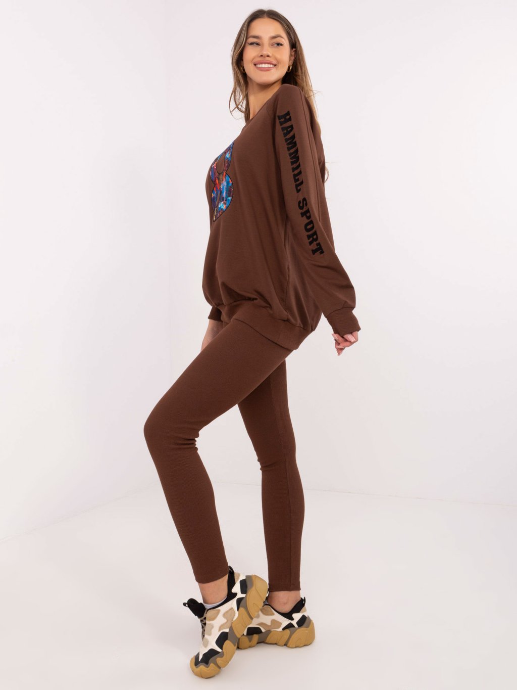 HNĚDÁ DÁMSKÁ TEPLÁKOVÁ SOUPRAVA S NÁPISEM