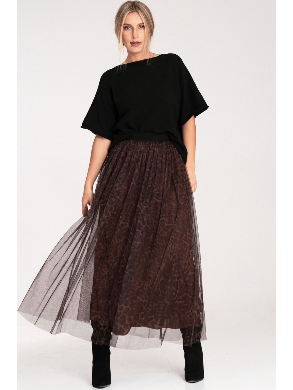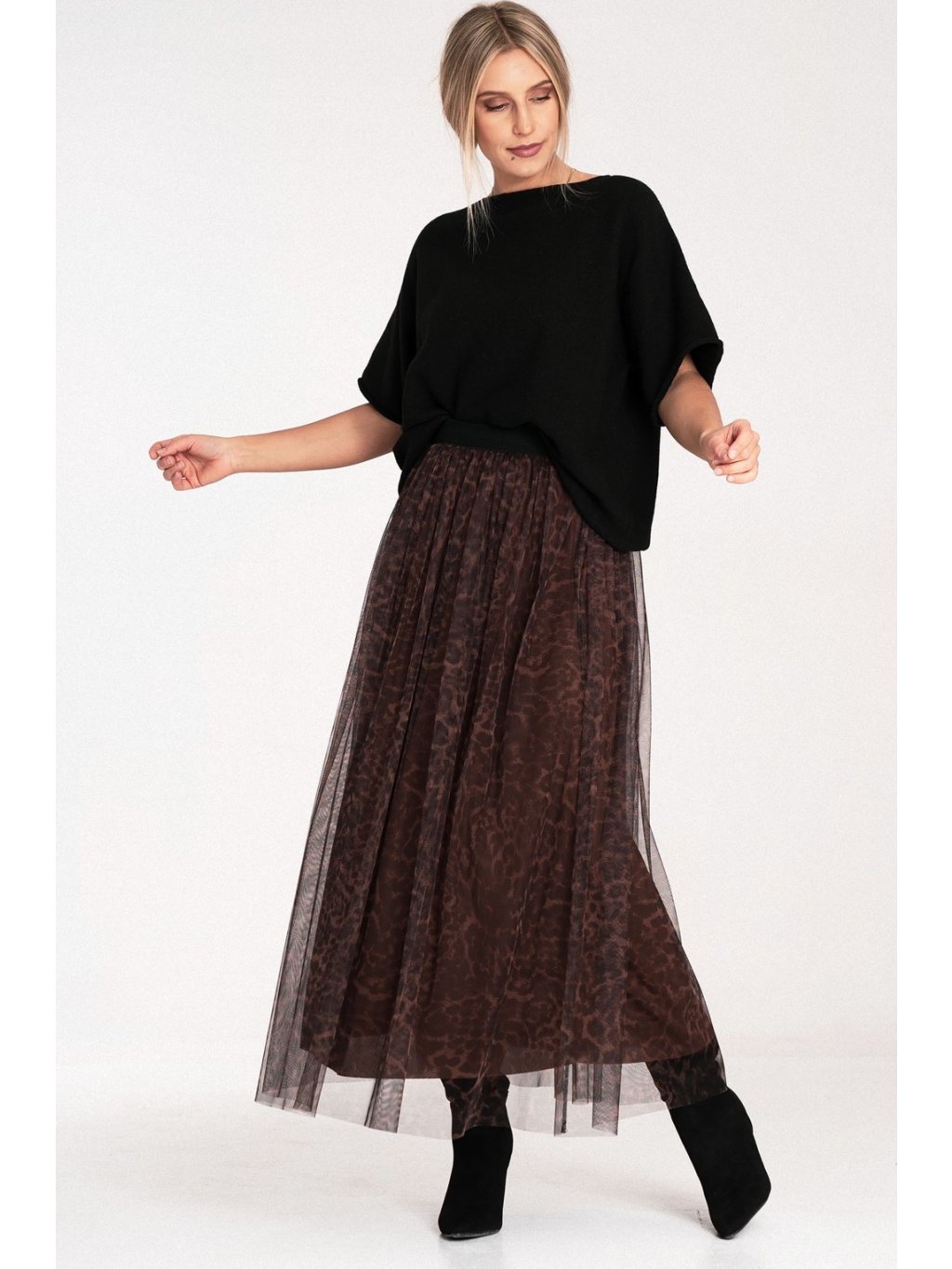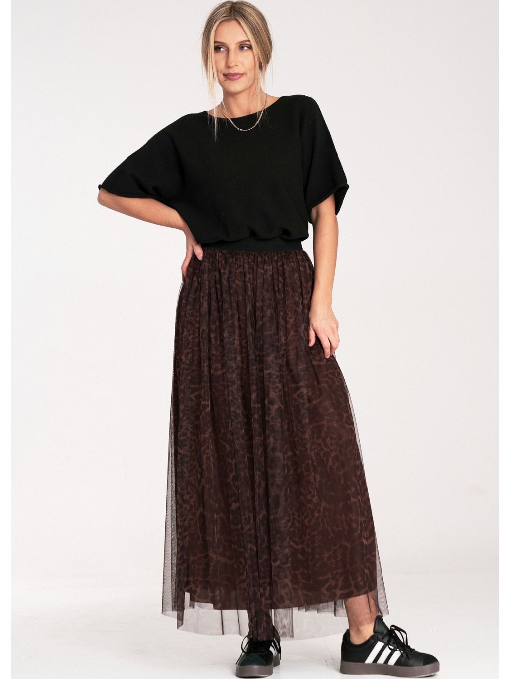 HNĚDÁ DÁMSKÁ VZOROVANÁ MIDI SUKNĚ