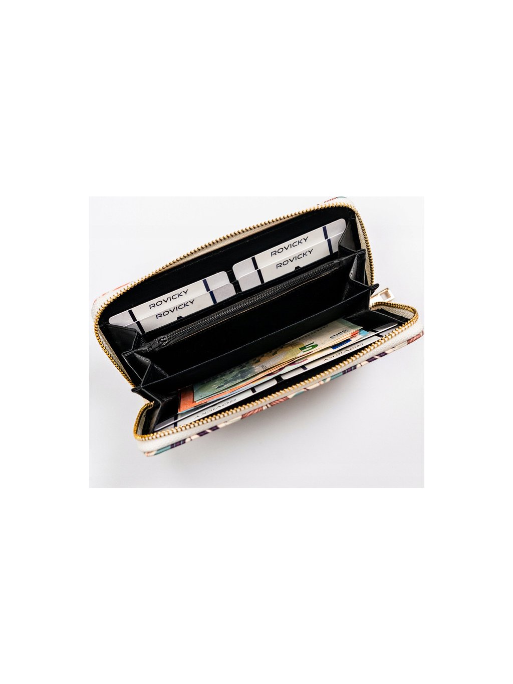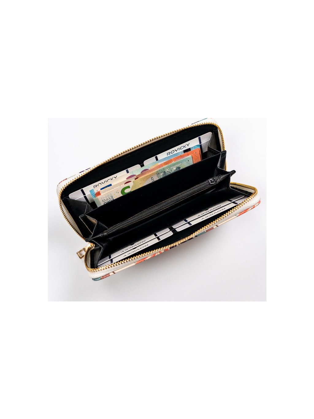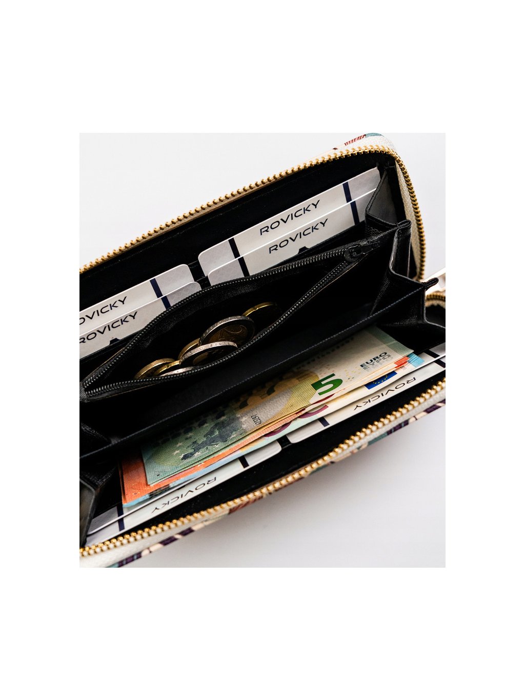 - 3 široké otevřené přihrádky na bankovky