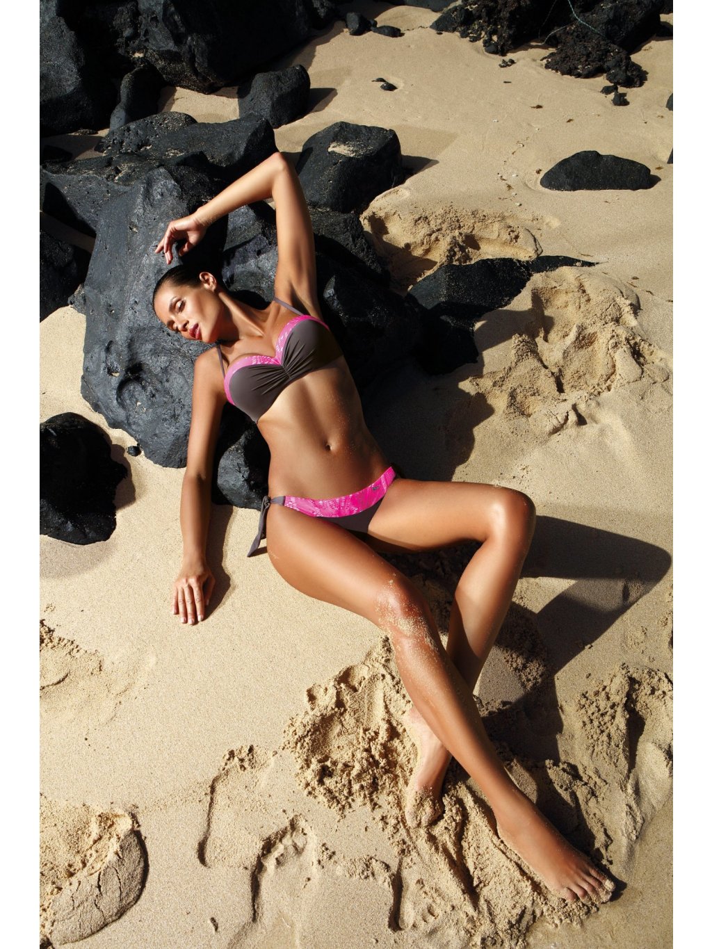 HNĚDÉ BIKINY S RŮŽOVÝM PRUHEM FELICIA TORTORA-PIEDRA