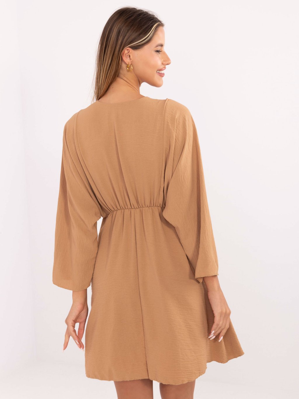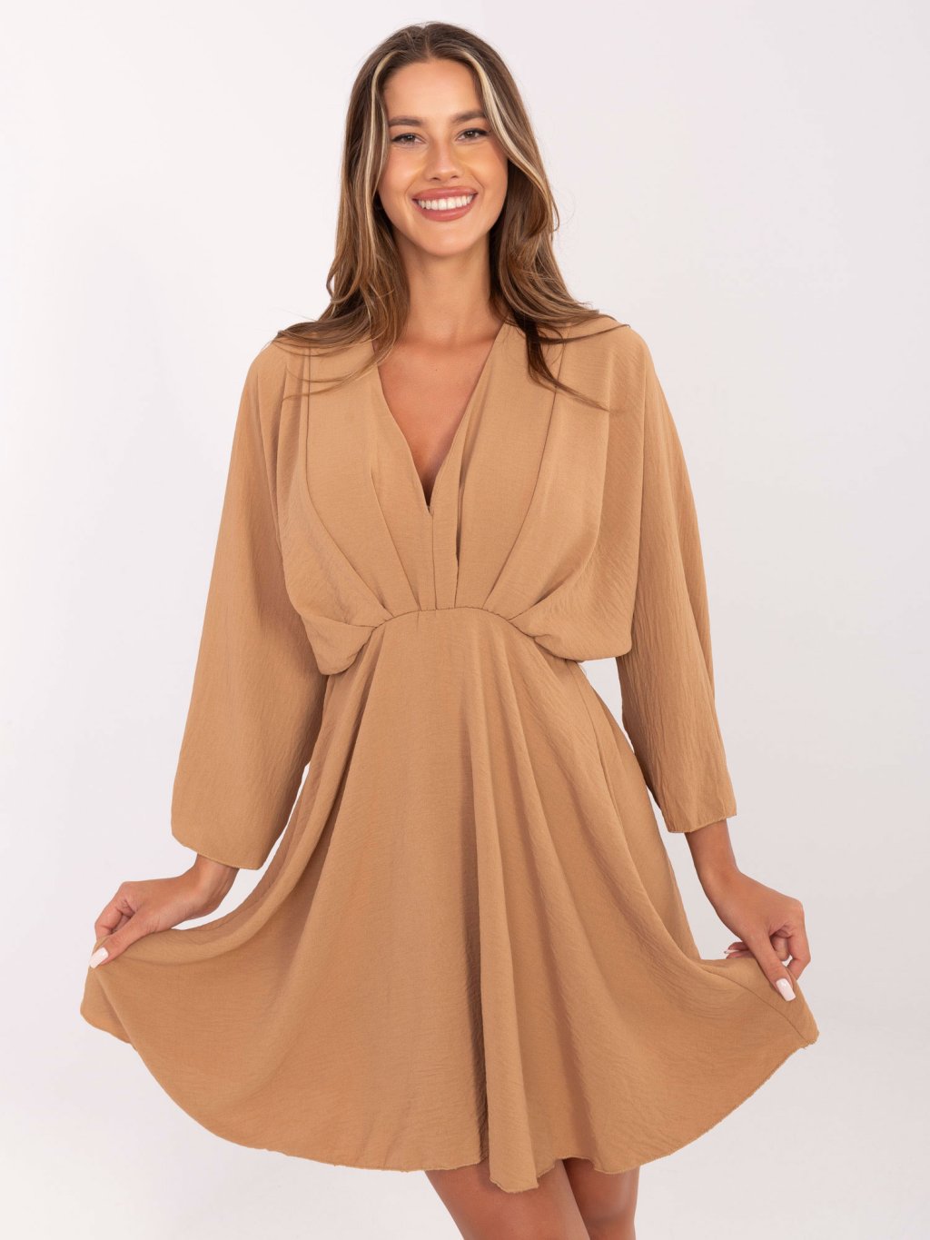 HNĚDÉ DÁMSKÉ ŠATY S ŘASENÍM